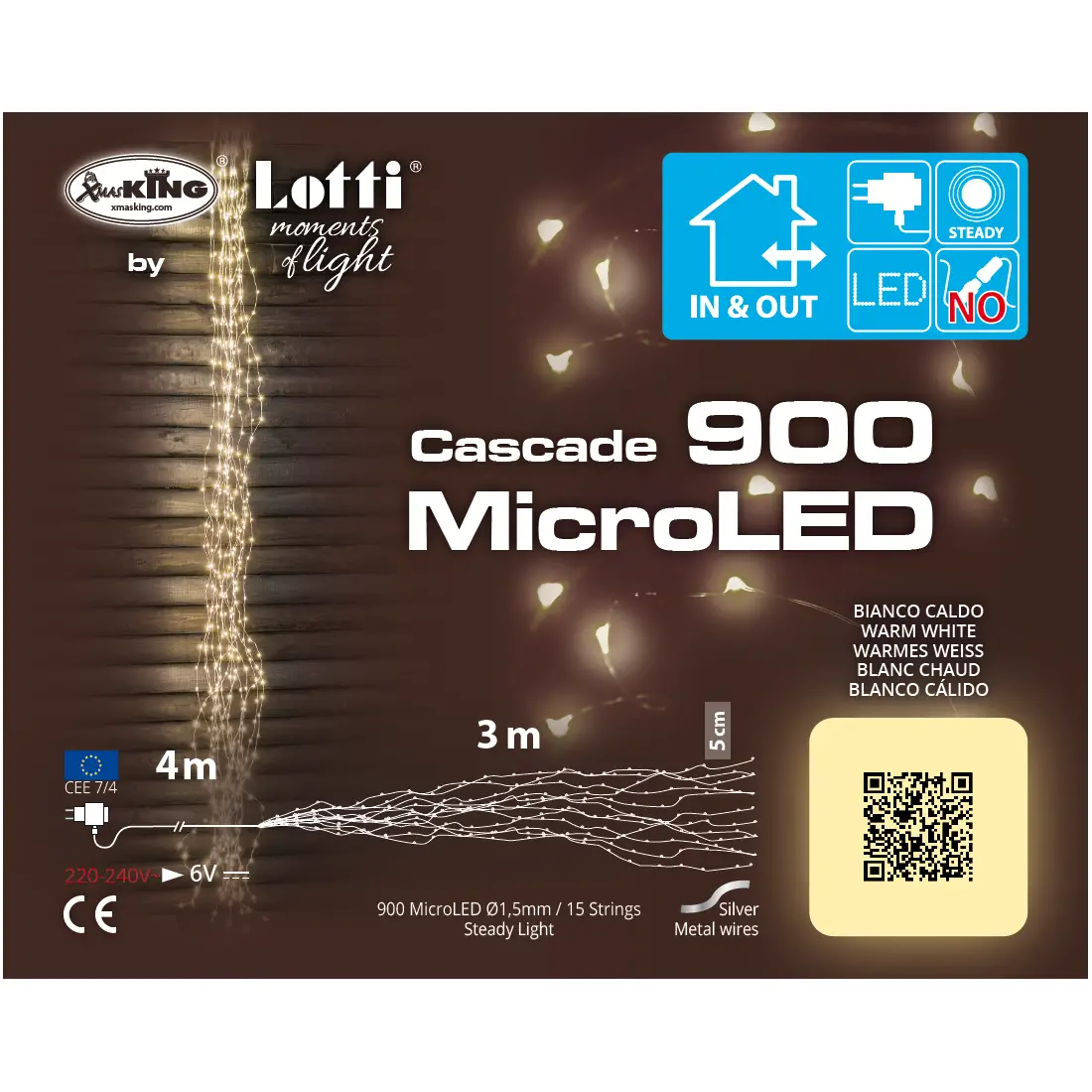 La Cascata Lotti 900 MicroLED Bianco Caldo è sinonimo di eleganza, sicurezza e qualità superiore. Grazie al suo design raffinato con filo silver e alla luminosità calda e avvolgente, trasforma ogni ambiente in un luogo di pura magia e bellezza luminosa.