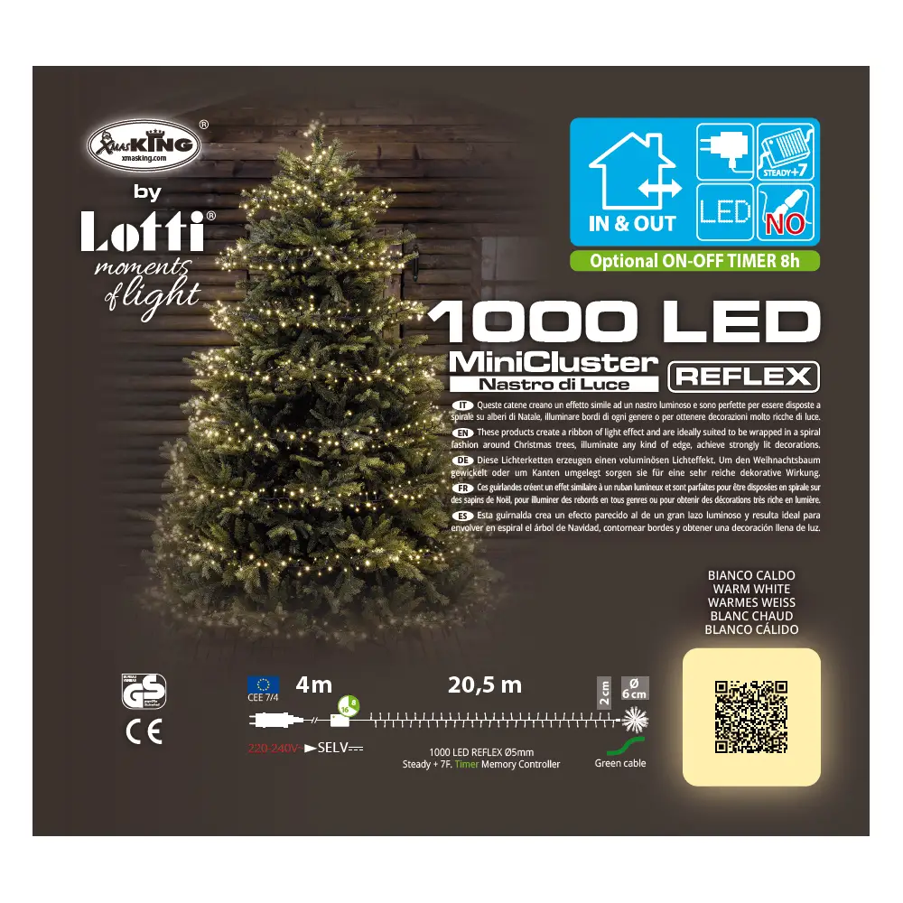 - 1000 LED Ø5mm Reflex: Diffondono una luce bianco caldo avvolgente, ideale per creare un’atmosfera calda e rilassante.