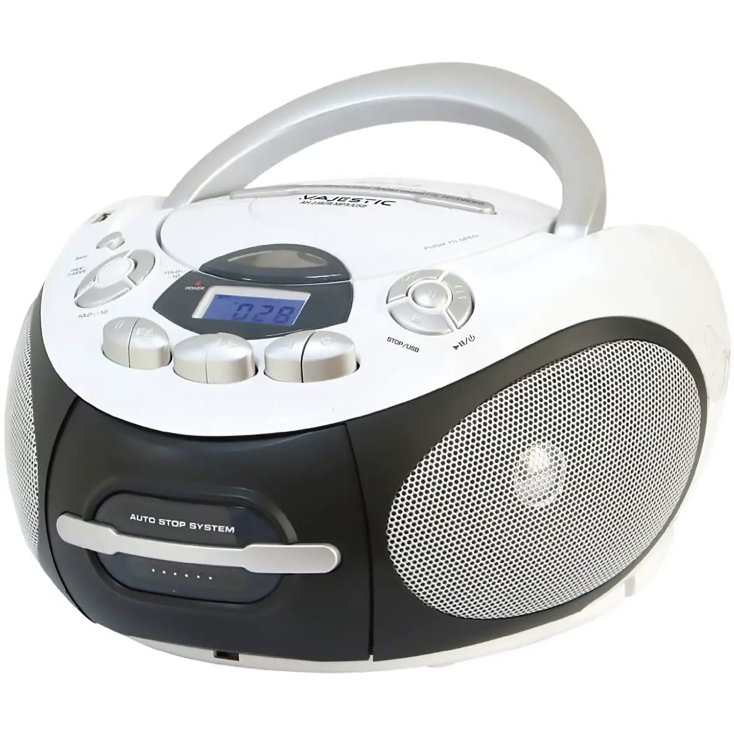 Il design include un display LCD per CD e USB, e una presa per cuffie/auricolari (non inclusi), permettendo di ascoltare la tua musica preferita in privato. Puoi alimentare il dispositivo tramite AC 230V/50Hz o con 6 batterie torcia D (non incluse), rendendolo ideale sia per l’uso domestico che in viaggio.