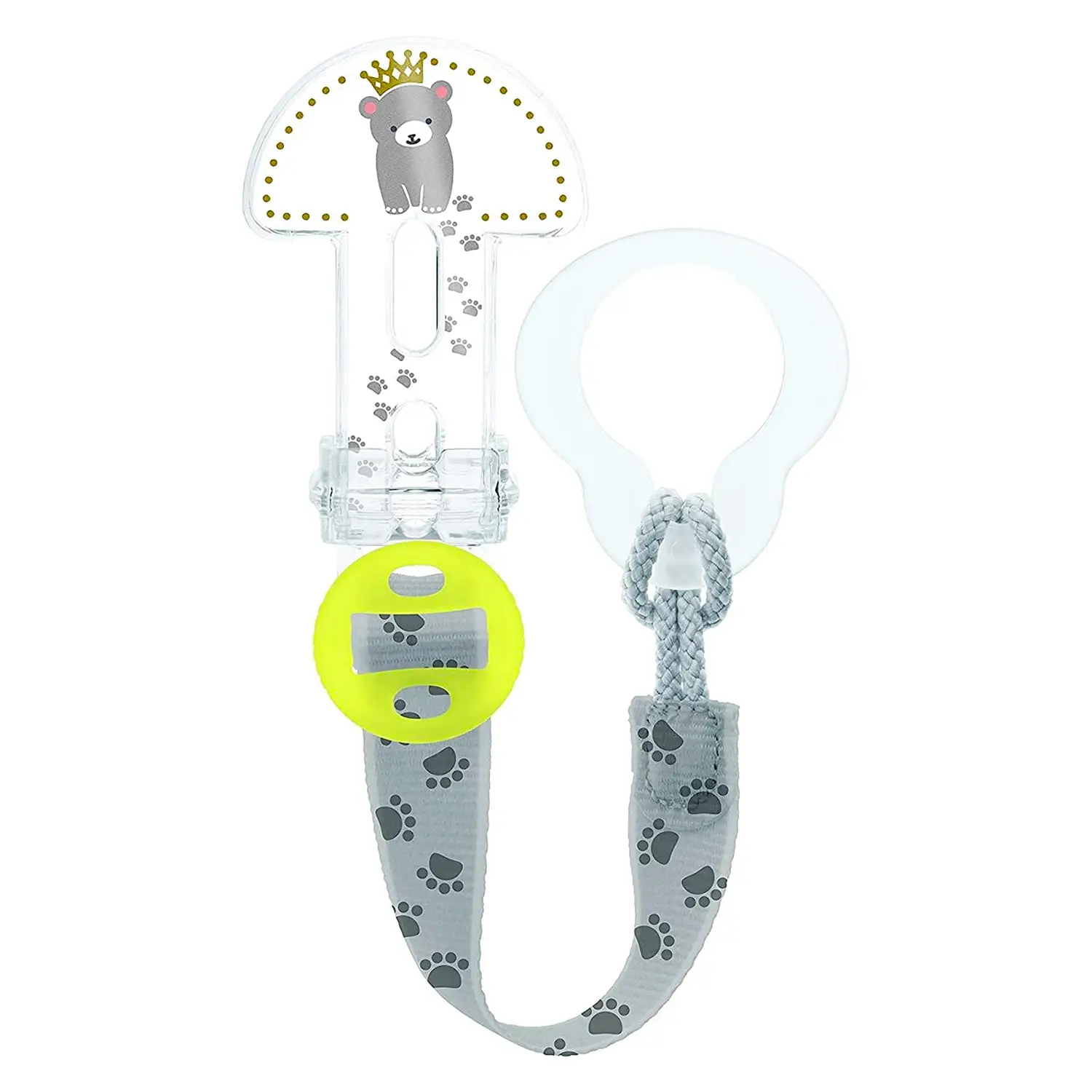 Sistema di fissaggio universale La clip regolabile con anello rimovibile si adatta a ciucci con bottone, ad anello, dentaruoli e piccoli giocattoli. Il passante flessibile consente un’ampia compatibilità, garantendo sicurezza e praticità durante l’uso quotidiano.