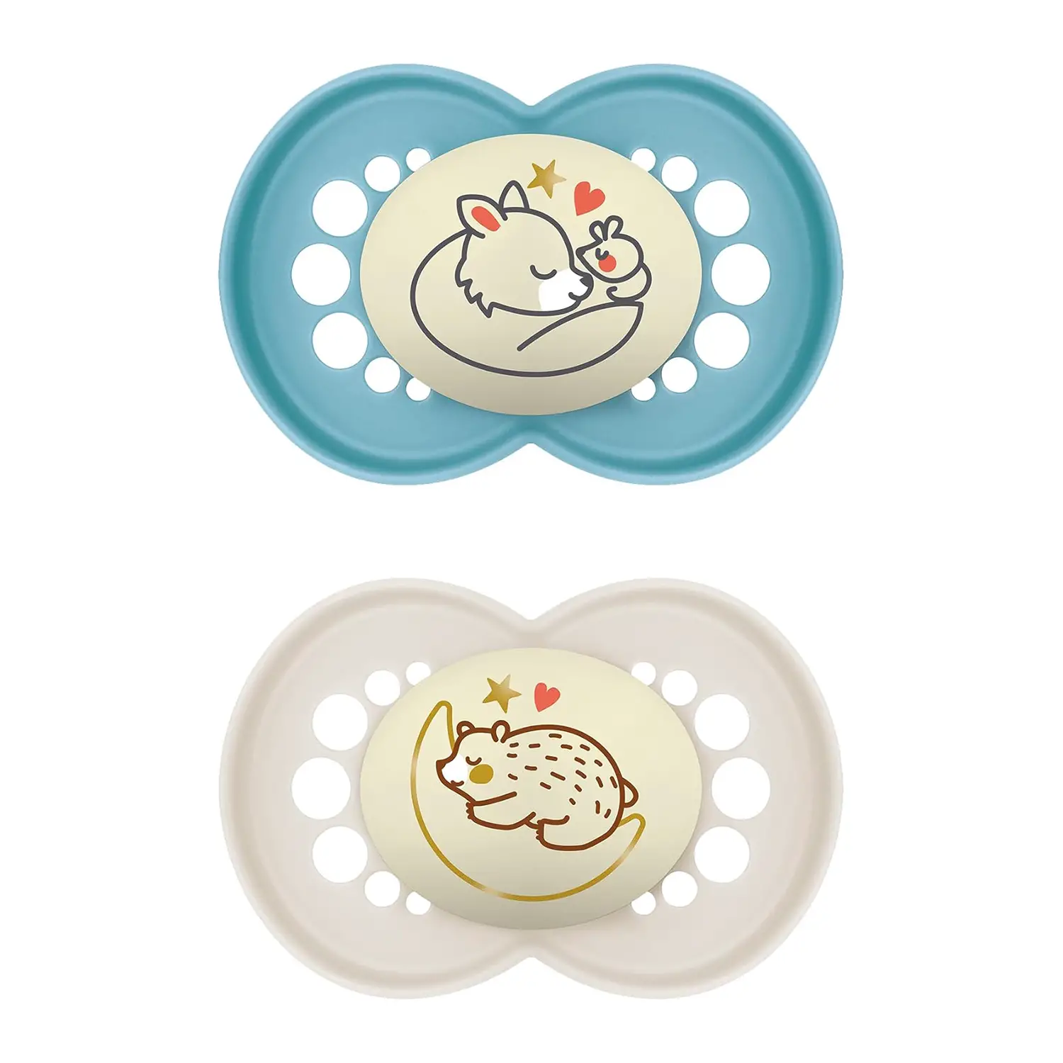 Succhietto Night Silicone Circular PP 2 Pezzi, +6 Mesi Bambino