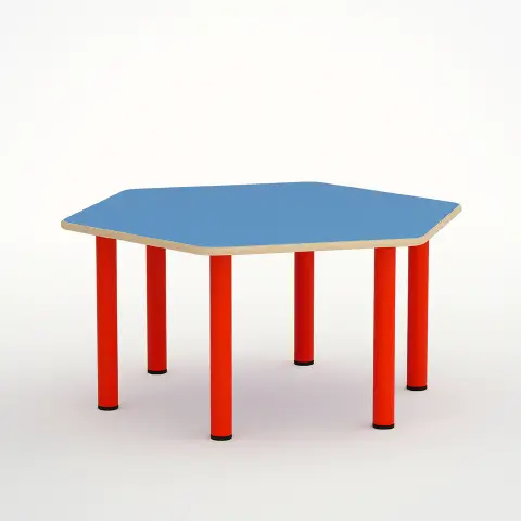 Tavolo Onda Esatondo H 52 Cm - Misura 2 - Blu Orizzonte Per Scuola Infanzia - Conforme CAM
