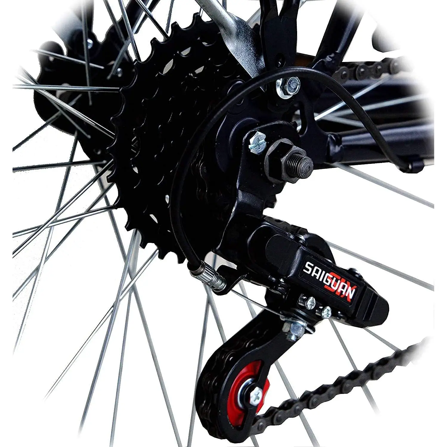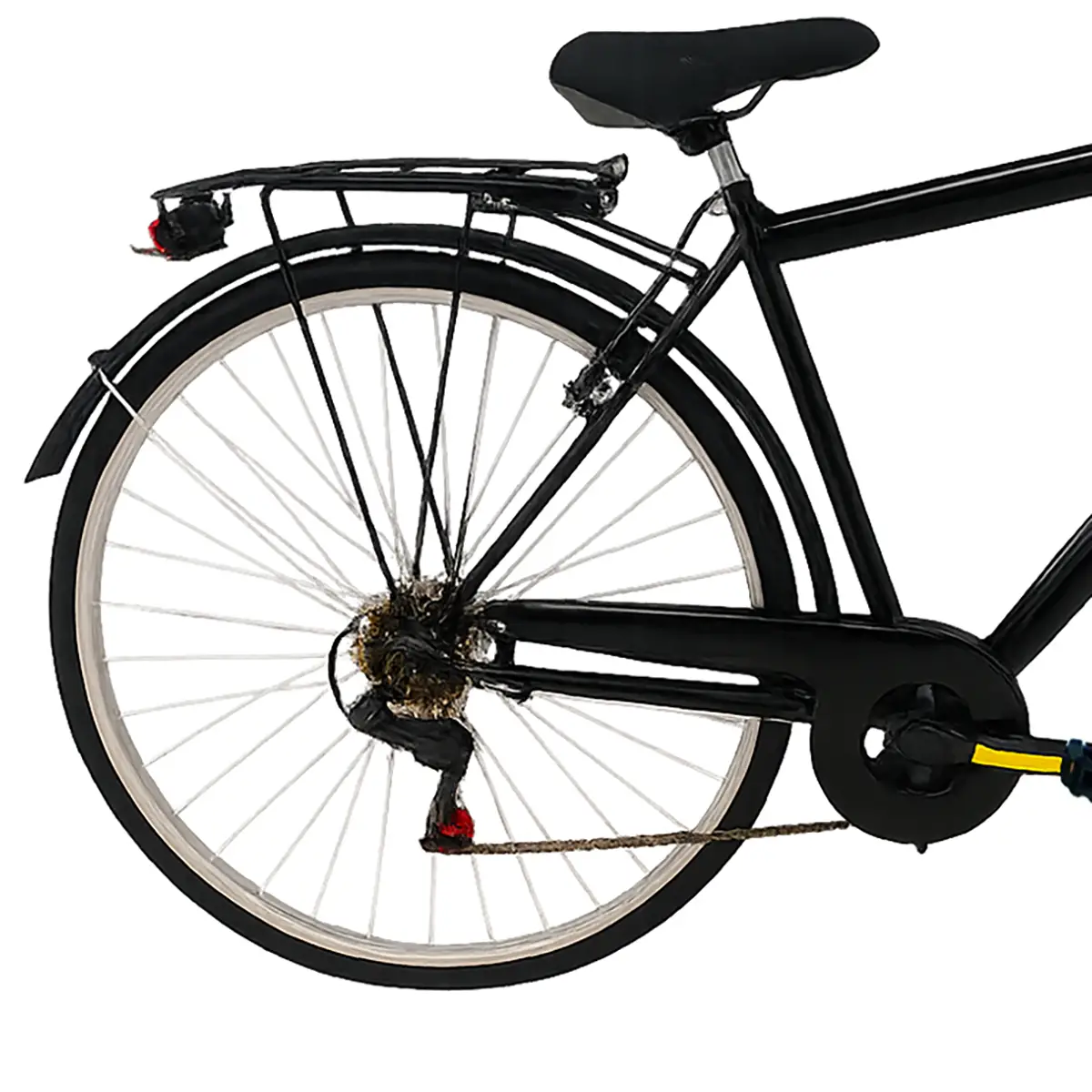 Telaio: acciaio resistente per una maggiore durata Freni: V-brake in acciaio per una frenata sicura Cambio: 18 velocità per una guida fluida e versatile Comandi: grip shift per cambiare marcia con facilità Ruota libera: 6 velocità Cerchi: in alluminio per leggerezza e resistenza Imballo in scatola per un trasporto sicuro