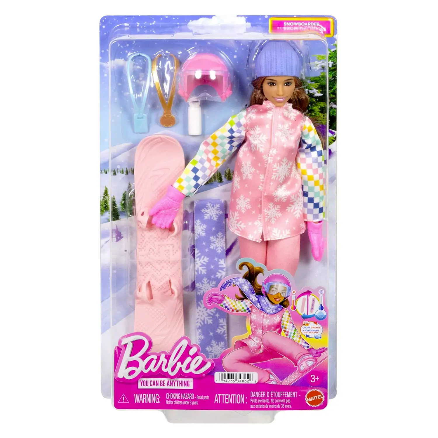 Barbie Carriere – Snowboarder Barbie ispira bambini e bambine a sognare in grande con la linea Carriere! In questa versione è una snowboarder professionista pronta a sfrecciare sulle piste innevate con stile e determinazione.