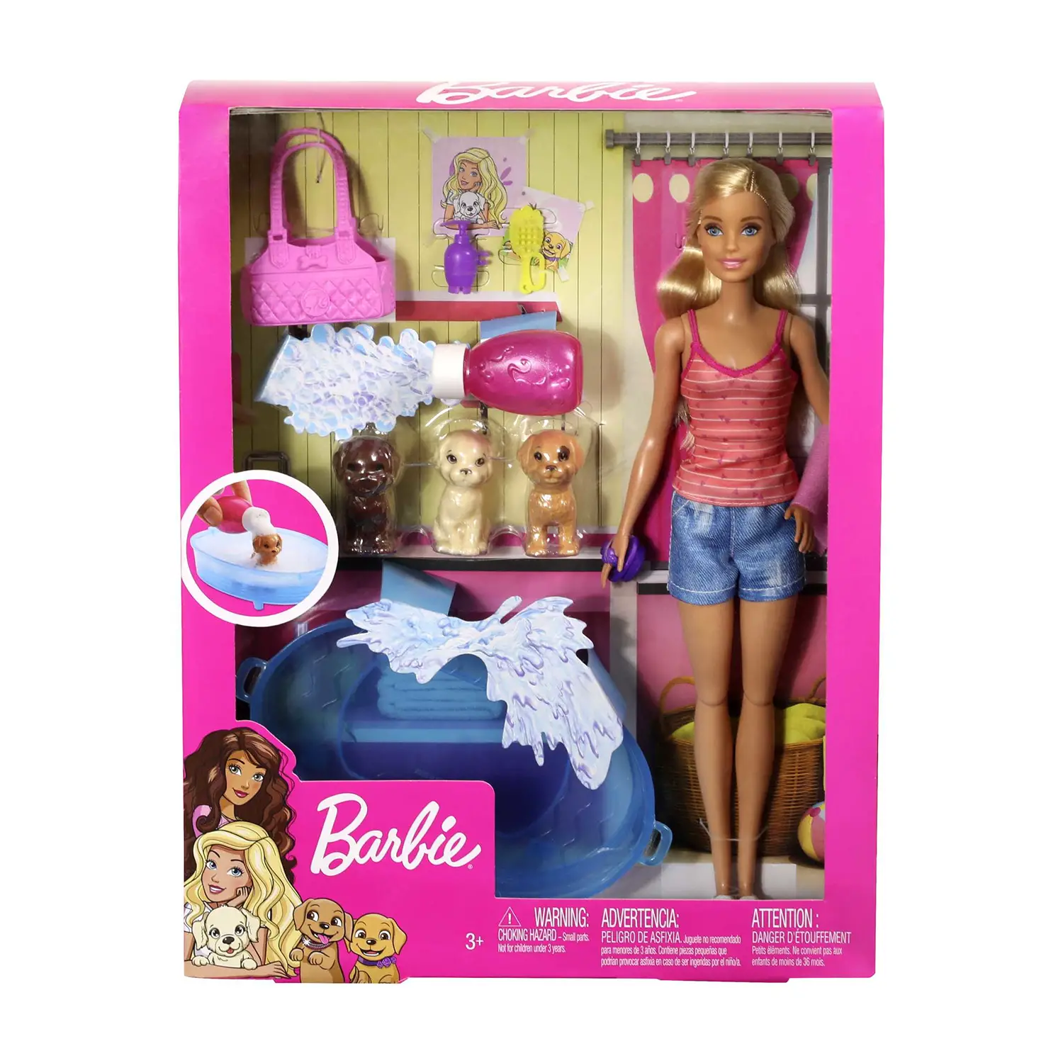 Barbie con 3 Cuccioli e Vasca da Bagno Playset