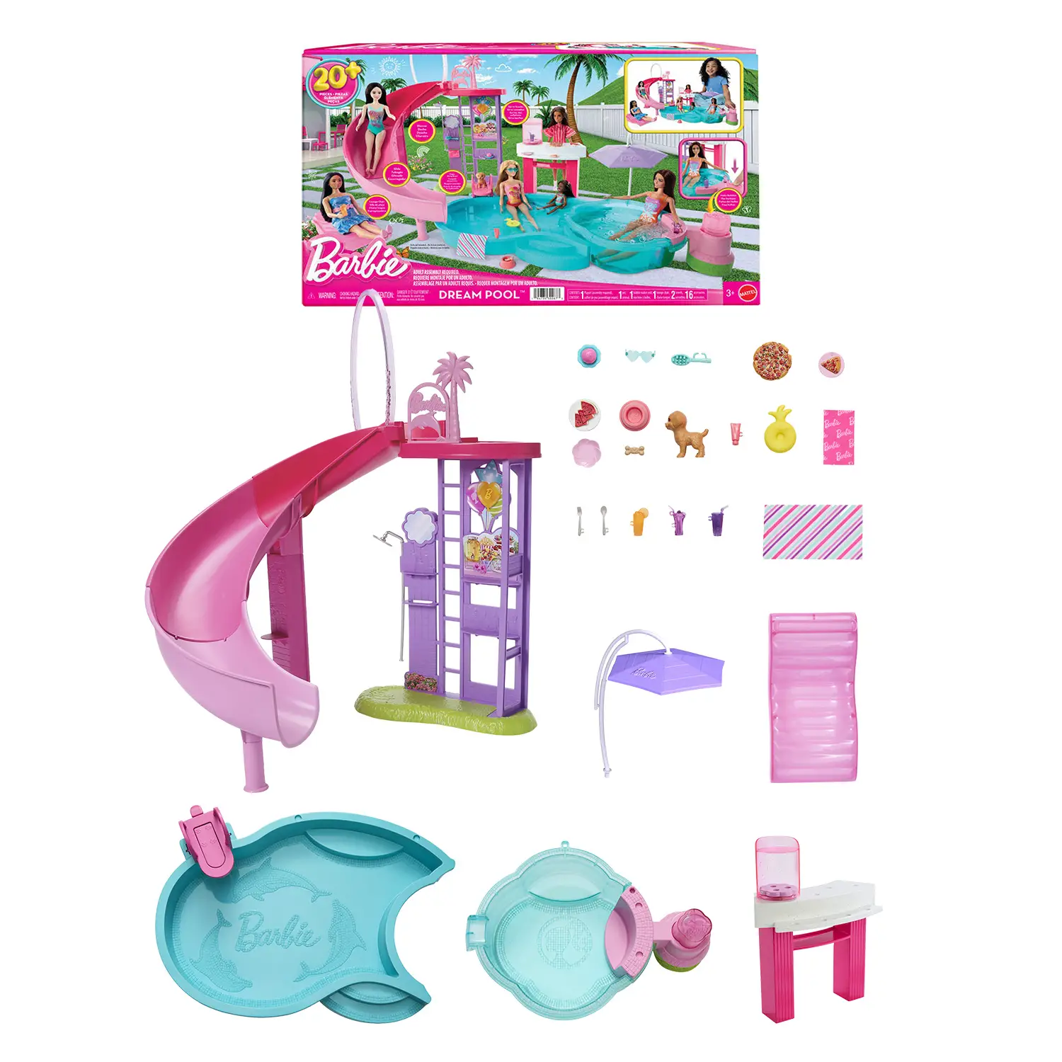 - ✅ Piscina Barbie con 6 aree gioco: scivolo, idromassaggio, snack bar