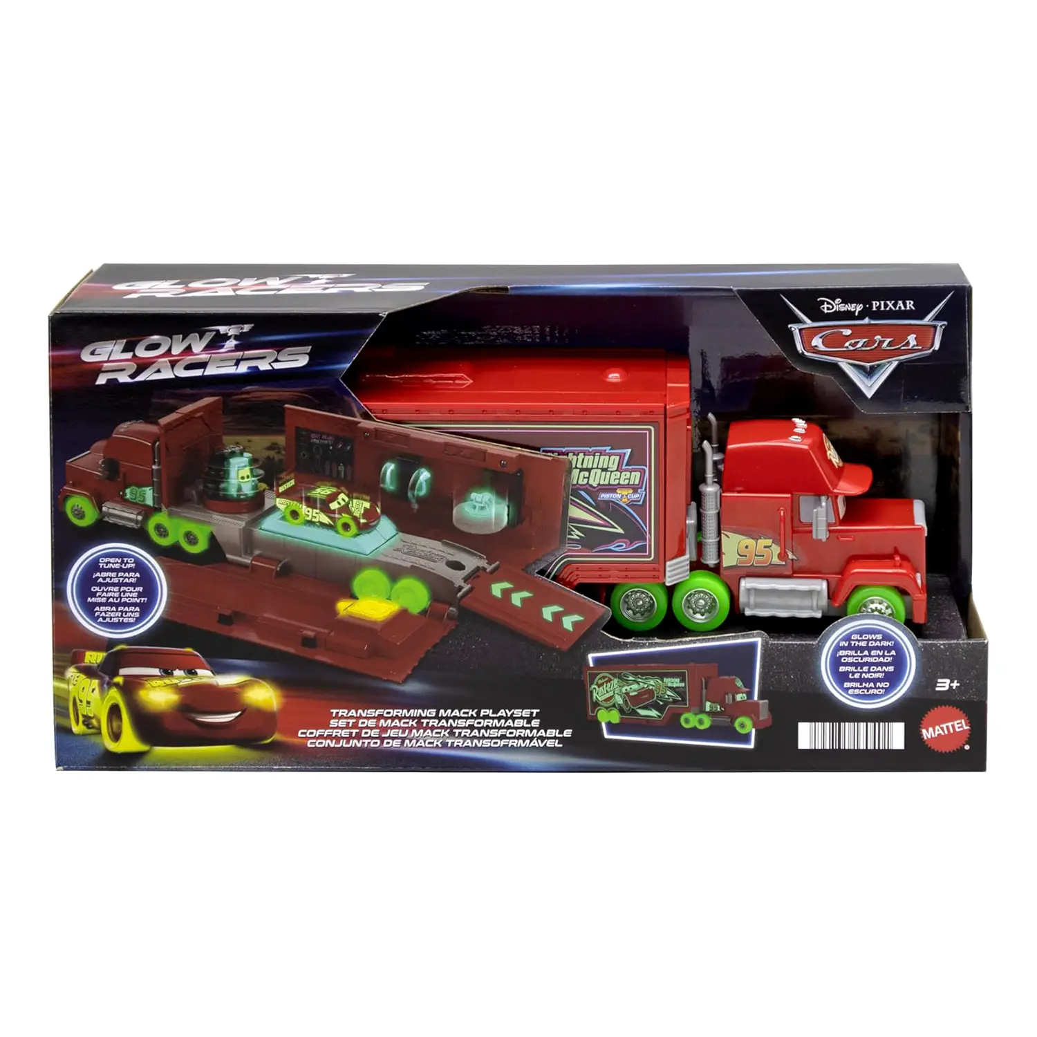 Il Mack Trasportatore Auto Luminose Disney Pixar è un playset versatile che si trasforma da camion a officina per emozionanti avventure di corsa. Elementi fluorescenti per un gioco ancora più divertente.