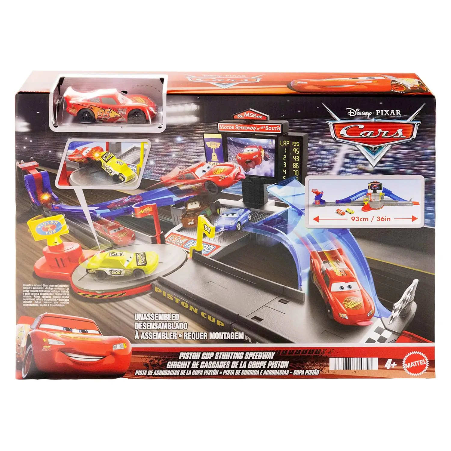 Compatibile con Altre Piste Cars Il playset misura circa 91,5 cm di lunghezza e può essere collegato ad altre piste o set Cars per creare circuiti ancora più lunghi e avventure sempre nuove.