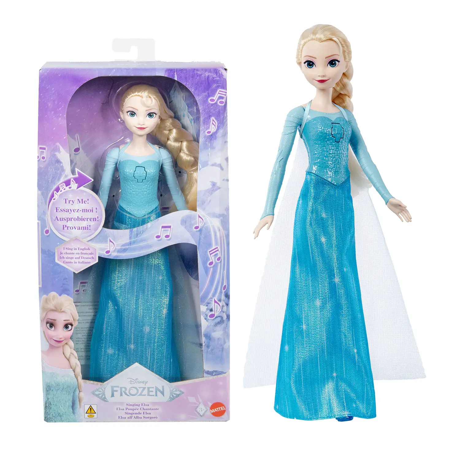 Canzone originale in 4 lingue Premendo il pulsante sulla parte superiore, Elsa canta una clip di 30 secondi della celebre canzone All’alba sorgerò. La bambola riproduce il brano in italiano, inglese, francese e tedesco, offrendo un’esperienza di gioco coinvolgente e multiculturale.