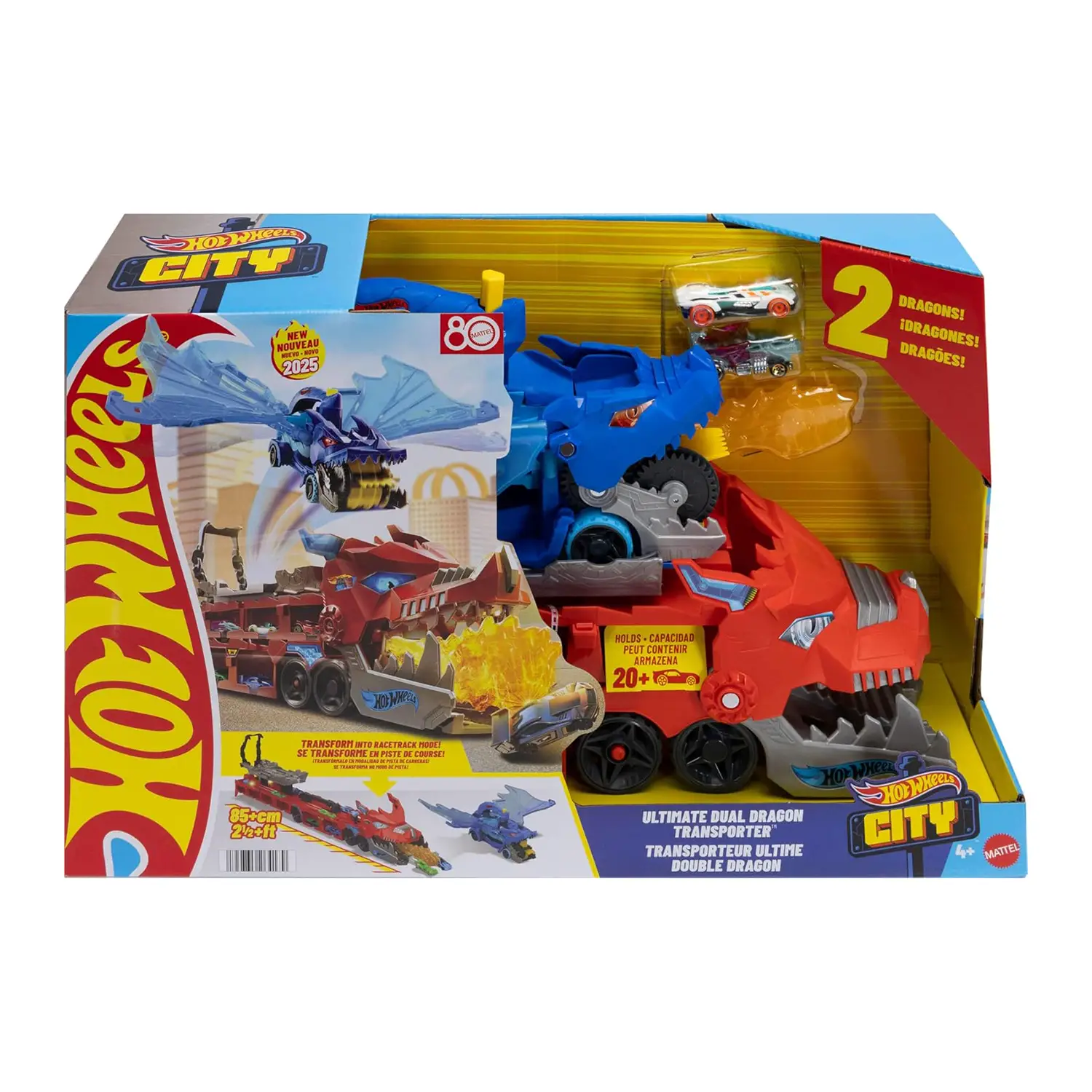 - ✅ I due draghi possono contenere fino a 20 veicoli Hot Wheels, perfetti per organizzare e trasportare la collezione.