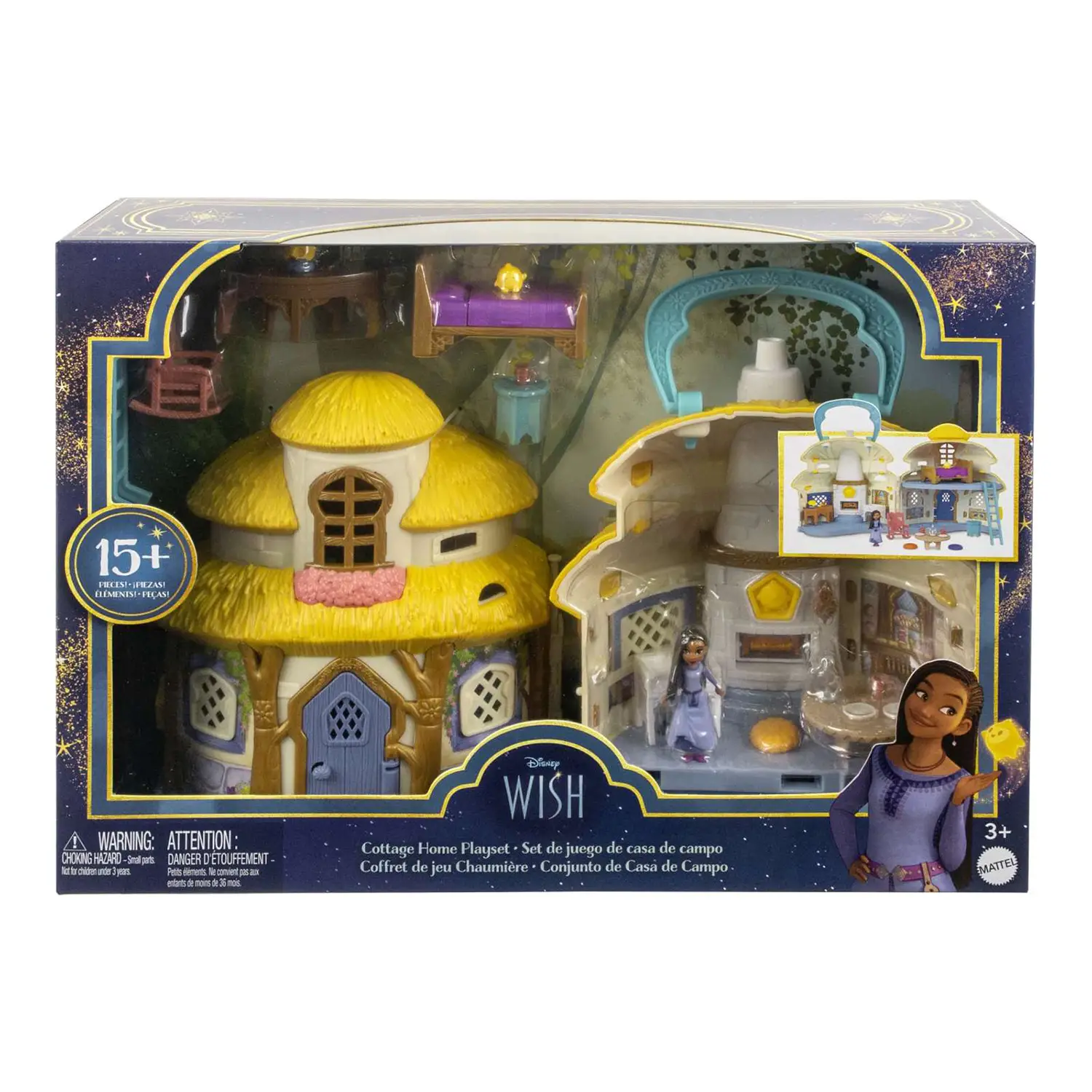 - Playset Dettagliato: Il playset si apre per rivelare un cottage a due piani, ricco di dettagli e spazi giocabili, ispirato alla casa di Asha nel film.