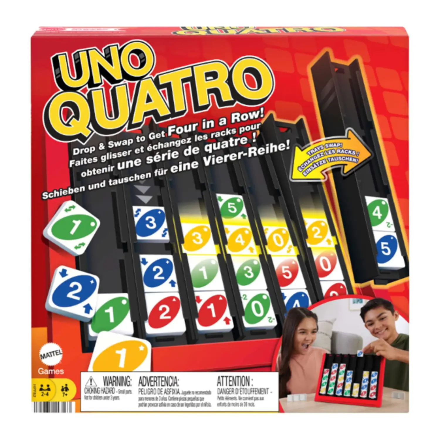 Perfetto per serate di gioco in famiglia, pomeriggi tra amici o momenti di sfida tra bambini, UNO Quattro unisce abilità, strategia e un pizzico di fortuna in un mix irresistibile.