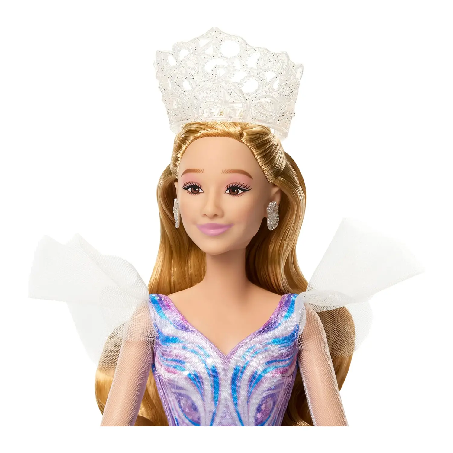 • ✅ Bambola Glinda con abito in organza ispirato al film, spalline svolazzanti e maniche scintillanti.