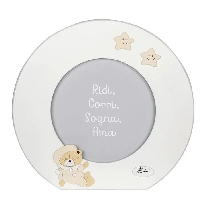PORTA FOTO IN LEGNO BIANCO CON ORSO BEIGE TONDO DIAM.25.5