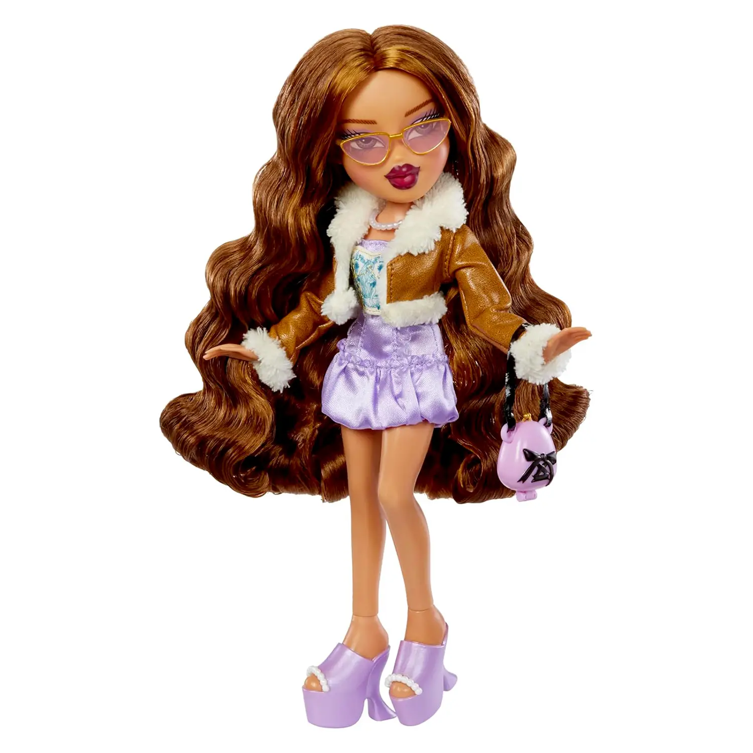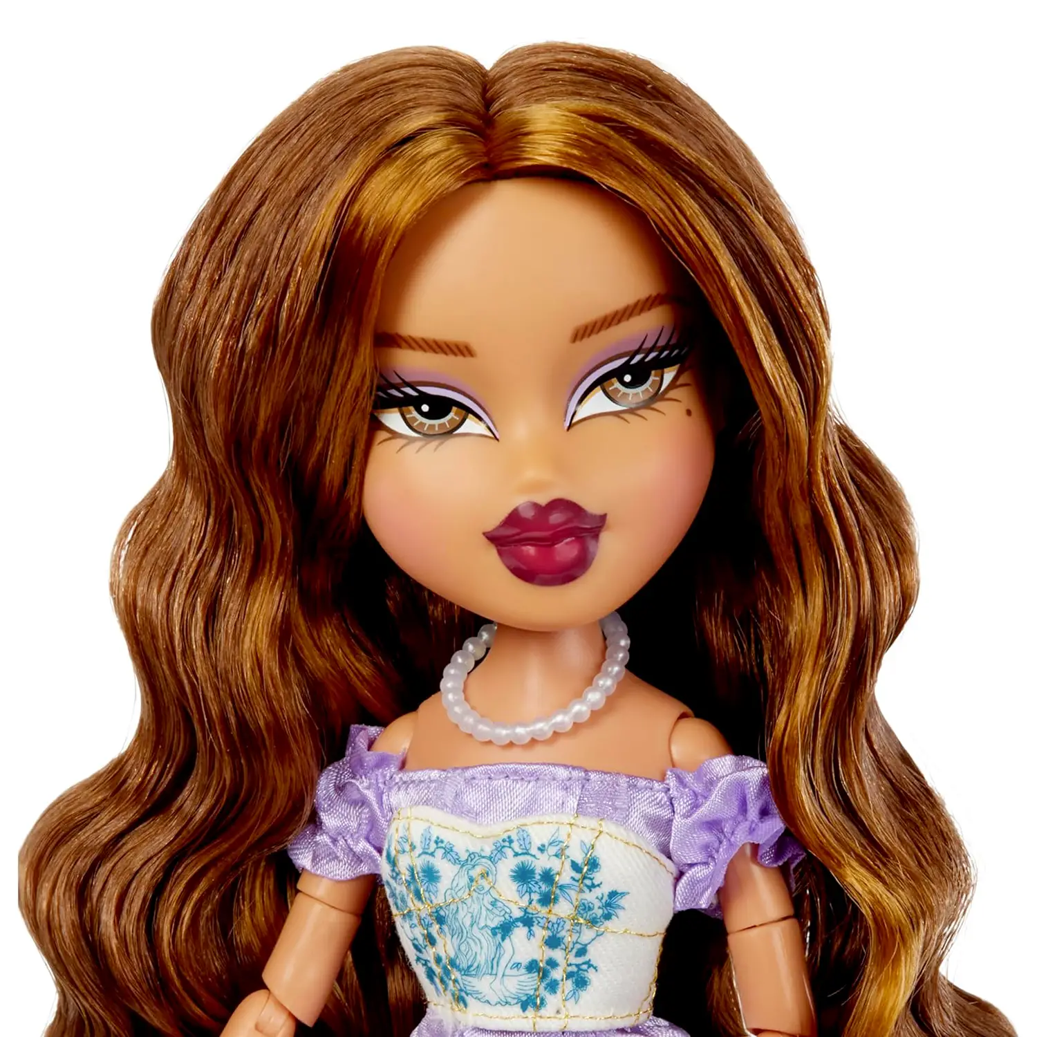 Stile Unico di Yasmin Yasmin, la Pretty Princess delle Bratz, combina vintage e moderno. I suoi abbinamenti riflettono una passione unica per la moda, rendendola un’icona di stile. Outfit Glamour Indossa un top floreale su abito tulle lavanda, giacca ecopelle marrone con pelliccia sintetica e tacchi decorati con perle, esaltando il suo look glamour. Accessori Esclusivi La bambola Bratz Goin’ Out! Doll - Yasmin include collana di perle, borsetta lavanda e occhiali da sole abbinati, completando un look da vera icona fashion. Packaging Speciale Confezione luminosa con dettagli metallici, ispirata alle riviste di moda. Perfetta per chi ama collezionare le Bratz in edizioni iconiche.