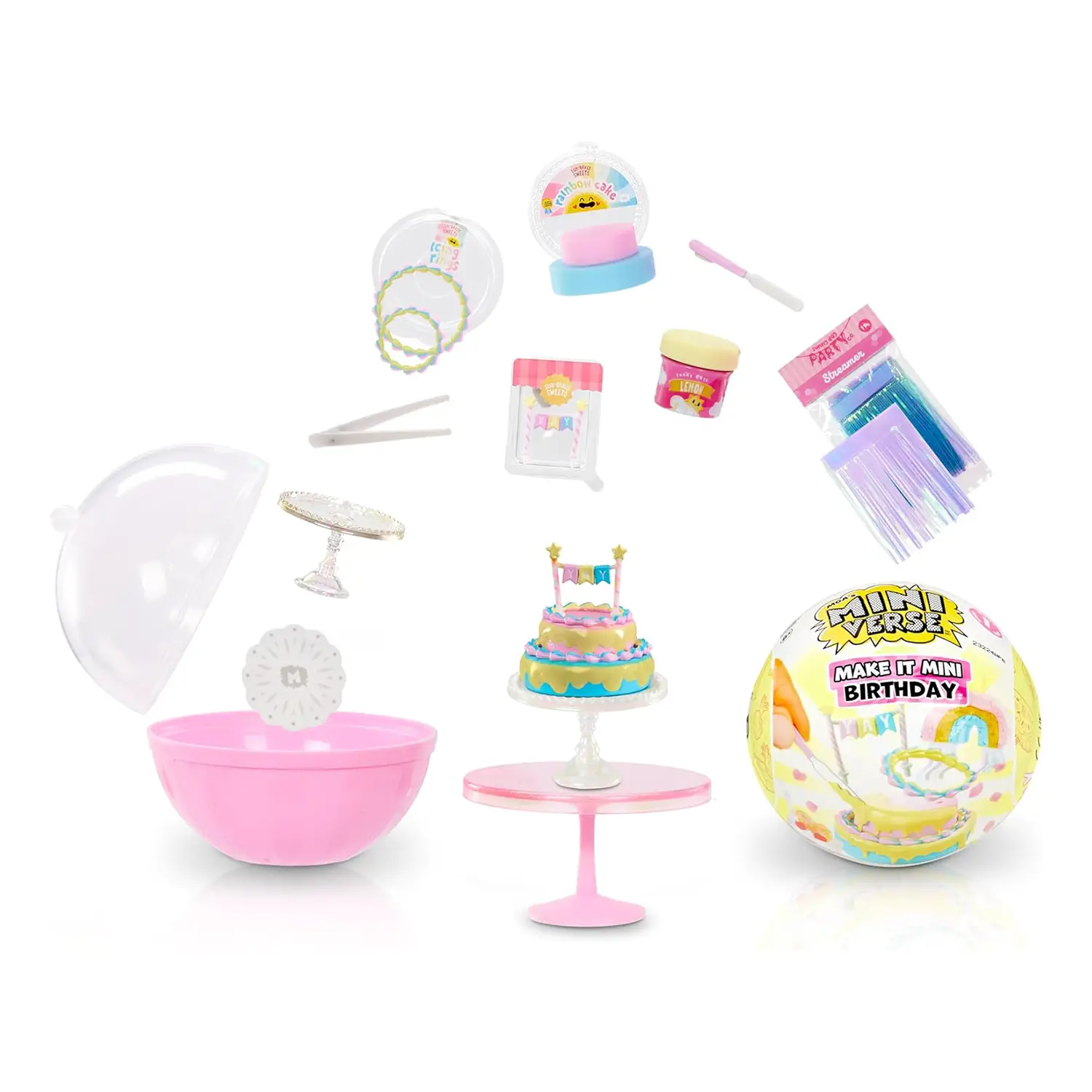 Organizza la festa definitiva in miniatura con la collezione Make It Mini Birthday di MGA’s Miniverse! Questa collezione unica include mini oggetti realistici ispirati a tre temi di festa: Arcobaleno, Dino e Tropicale. Ogni confezione misteriosa ti permette di scoprire e creare mini decorazioni e cibi festivi.