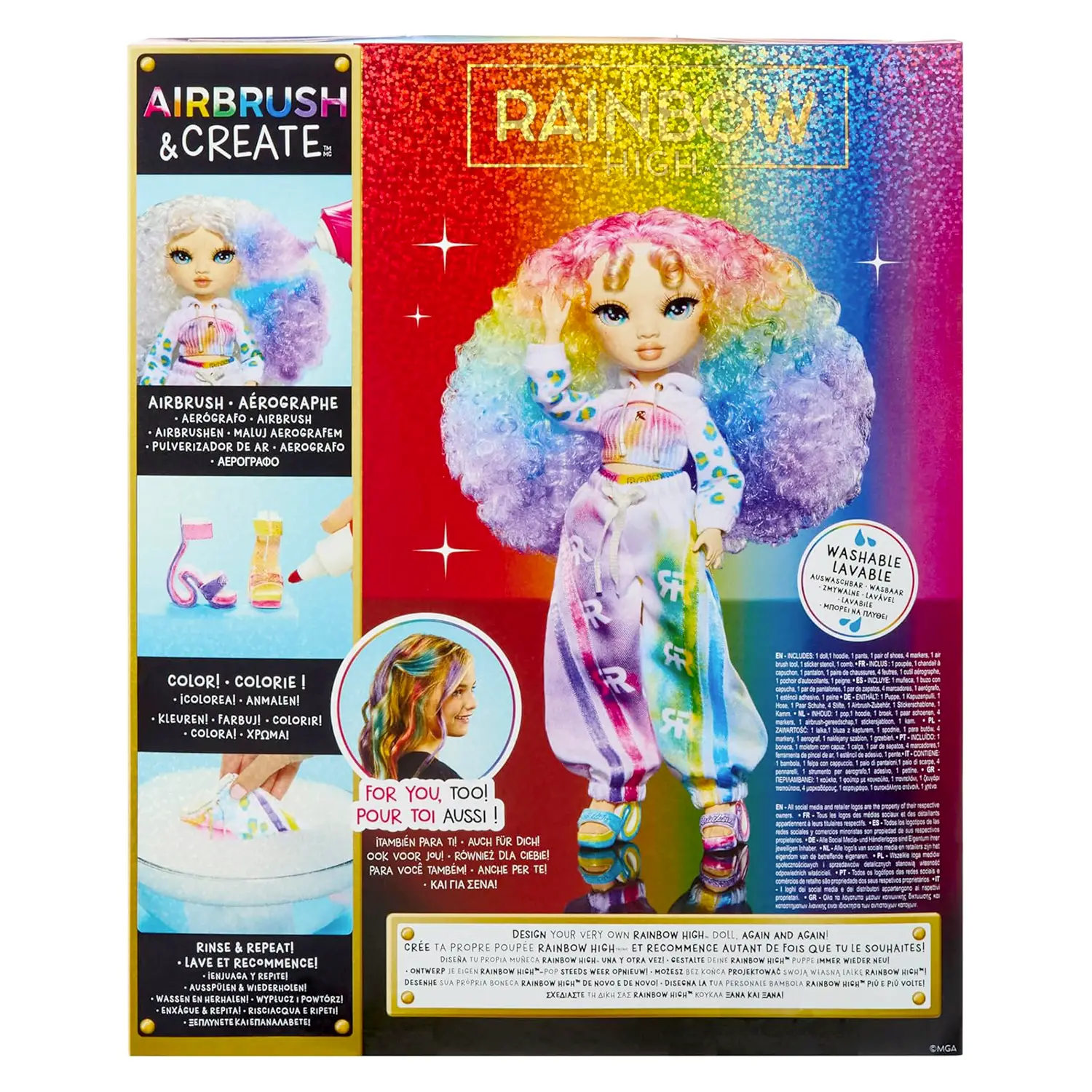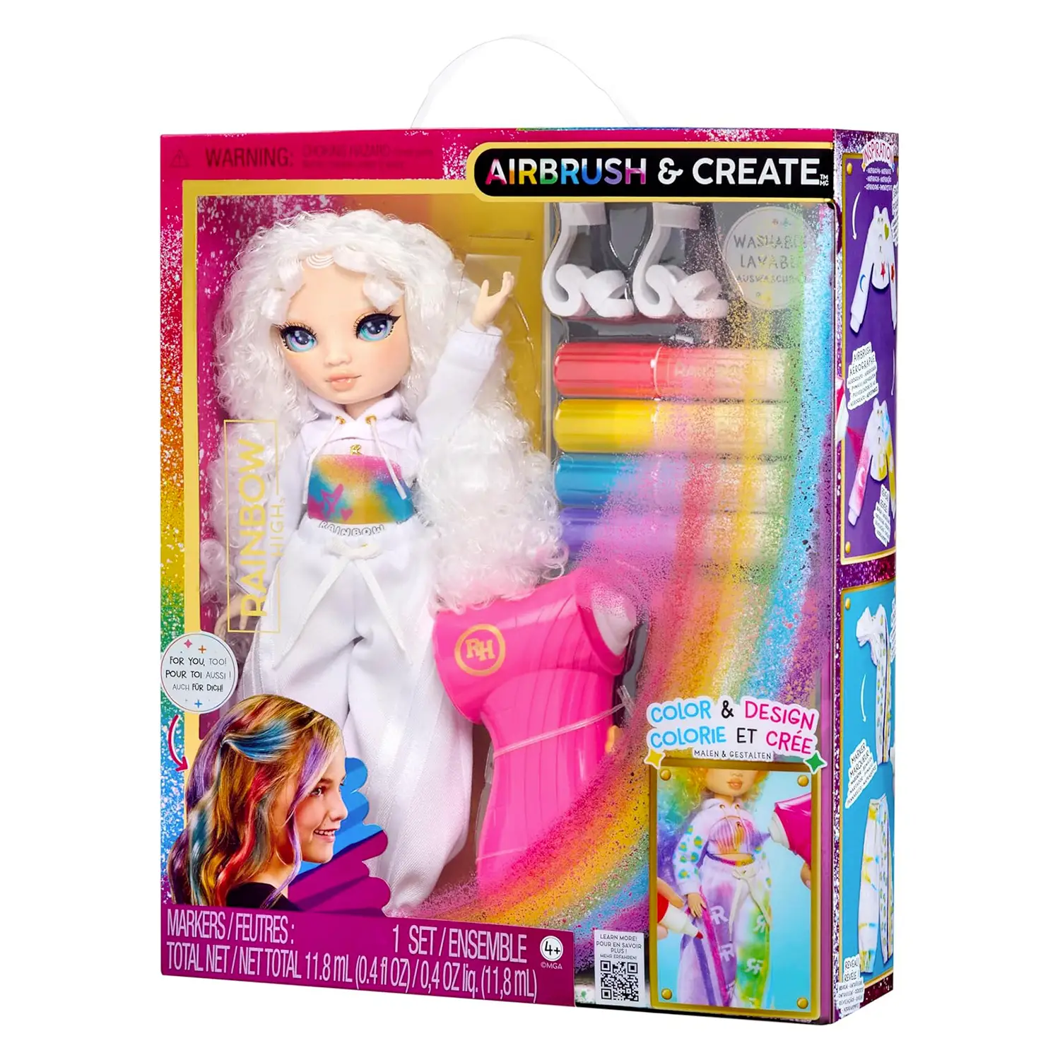 - ✅ Include un aerografo ad aria compressa e pennarelli lavabili per trasformare la bambola in un'opera d'arte.