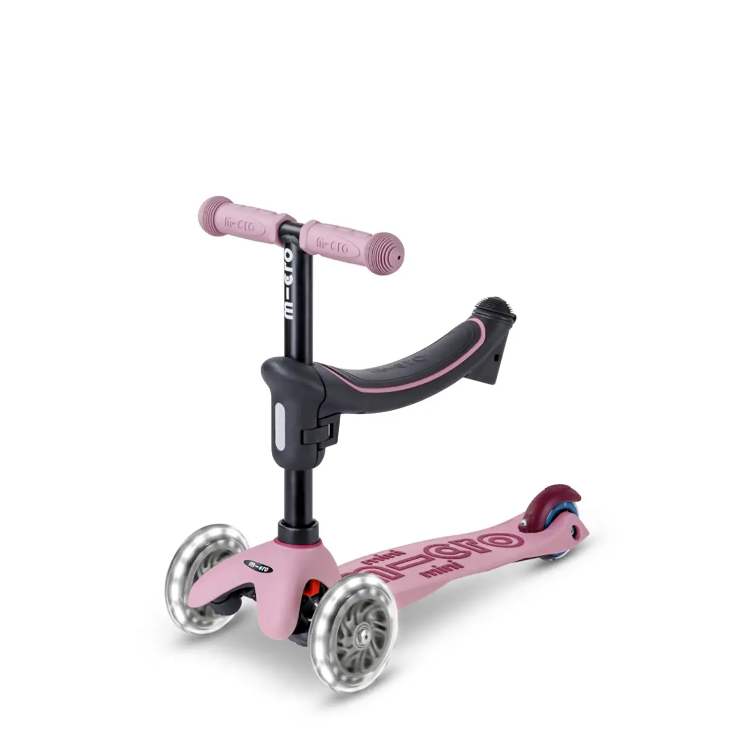 Monopattino Evolutivo Micro Mini2Grow Deluxe LED 2.0 Il Micro Mini2Grow Deluxe LED 2.0 colore Dusty Rose è un monopattino evolutivo progettato per accompagnare la crescita dei bambini da 1 a 6 anni. Grazie alla struttura modulare si trasforma facilmente seguendo le diverse fasi di sviluppo del bambino.