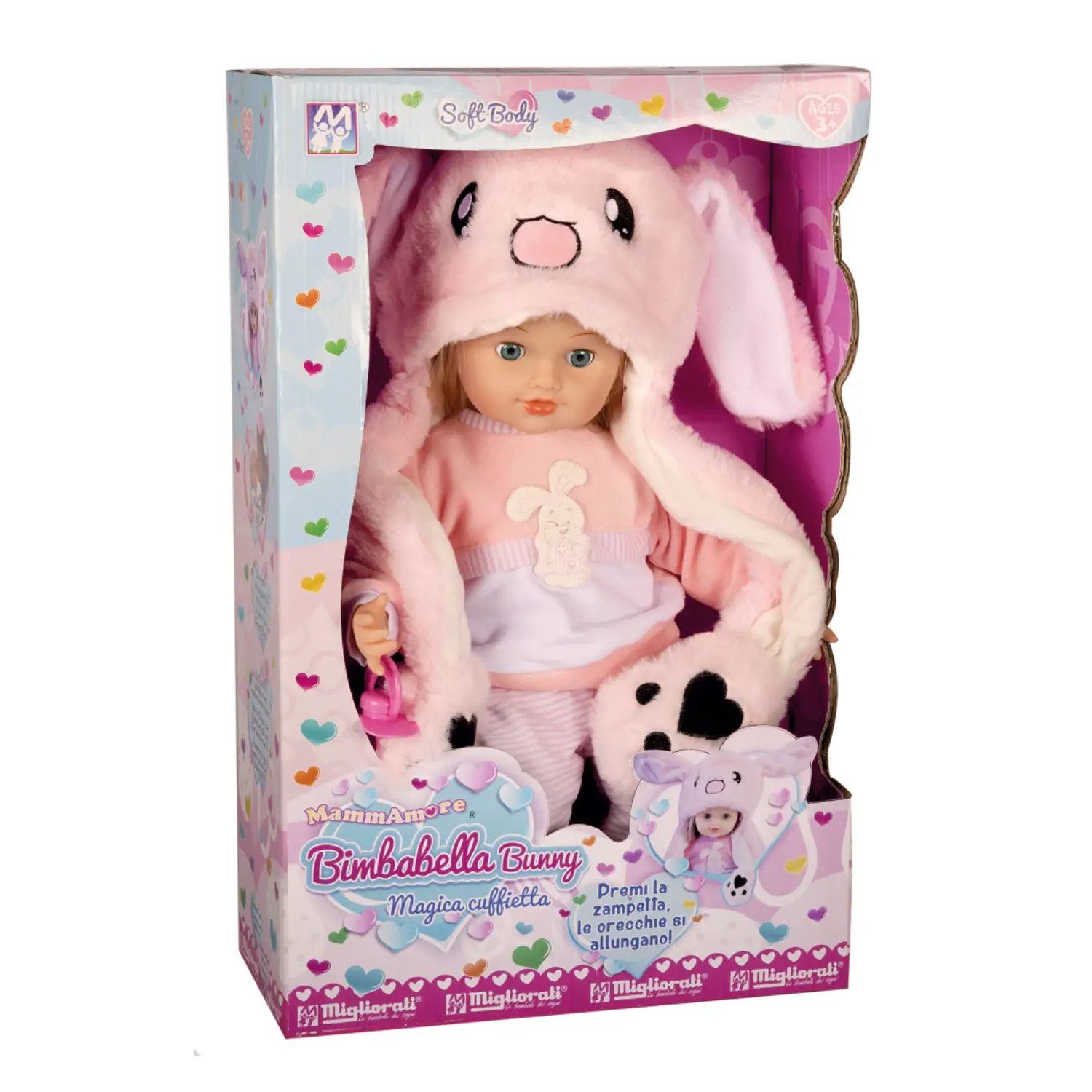 Con un’altezza di 46 cm, Bimbabella Bunny Magica Cuffietta è abbastanza grande per essere abbracciata e portata ovunque. I bambini si sentiranno coccolati e protetti dalla sua presenza affettuosa, rendendo questa bambola un regalo ideale per ogni occasione speciale.