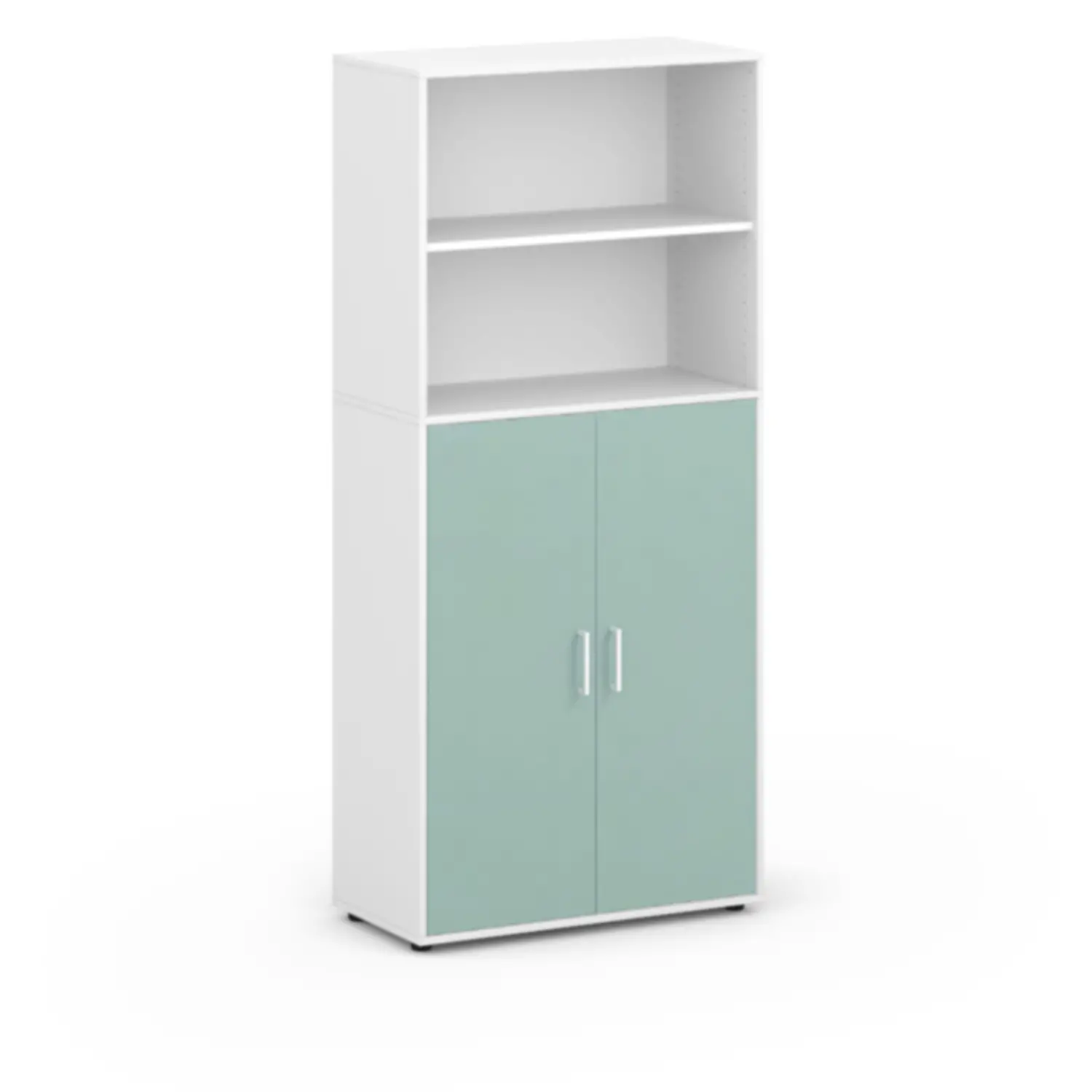 Mobile in conglomerato ligneo laminato finitura bianco opaco antiriflesso e antigraffio. Attrezzato con ripiano regolabile. Può essere utilizzato con altri mobili uguali o della stessa serie per infinite configurazioni e con i pouff colorati della serie Sofas.Dimensioni: ingombro cm 45x90x196hColore: bianco con ante salvia. Può essere attrezzato con serratura cod.30073 (opzionale da acquistare separatamente)