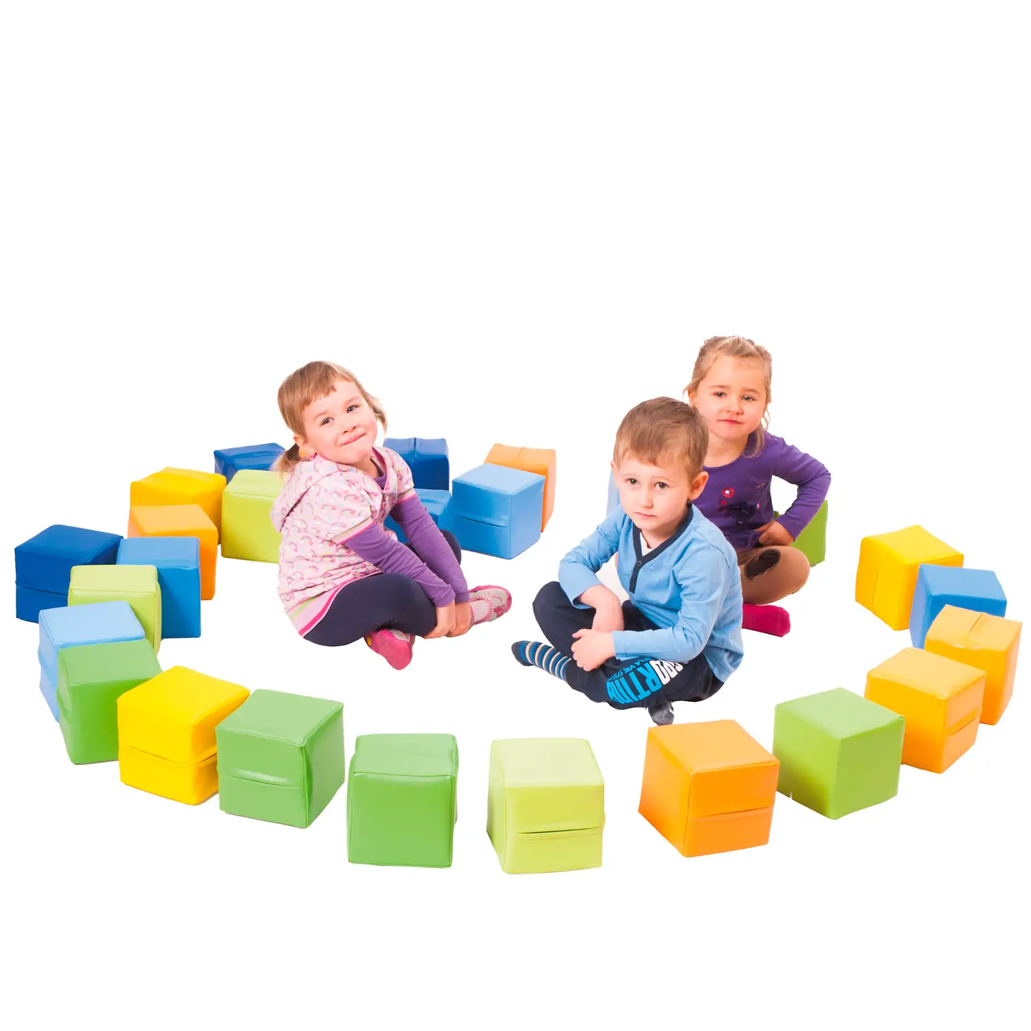 Cubi morbidi in colori vivaci, perfetti per stimolare la fantasia e la creatività dei bambini di tutte le età. L, leggeri e facili da afferrare anche per le mani più piccole.