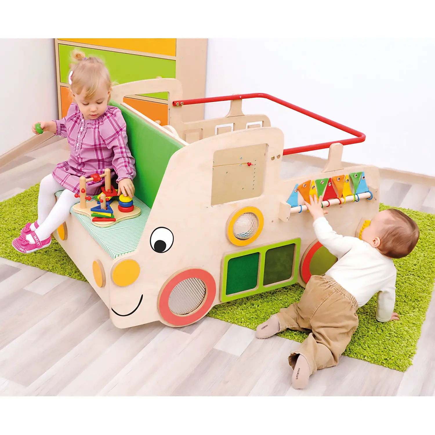 Scopri il gioco multiattività di MOJE BAMBINO, con volante mobile, clacson-squeaker e cambio-pista. Un’esperienza unica per i bambini della scuola infanzia.