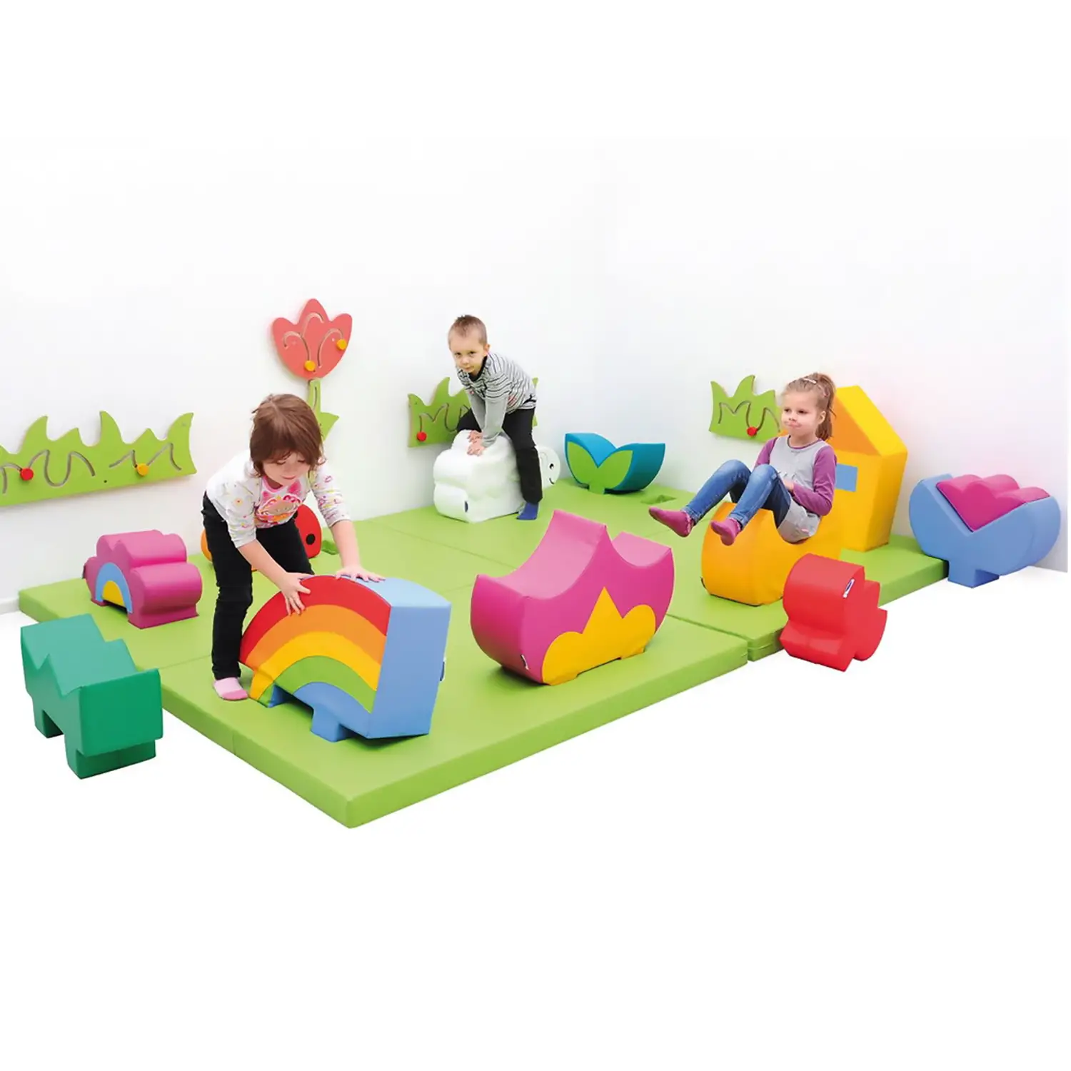 Il Morbido Giardino Dei Colori è un’esperienza sensoriale e motoria ideale per i bambini in fase prescolare. Combinando superfici morbide, colori vivaci e diverse forme, questo set offre un ambiente di gioco sicuro e stimolante, ideale per esplorare, imparare e divertirsi.