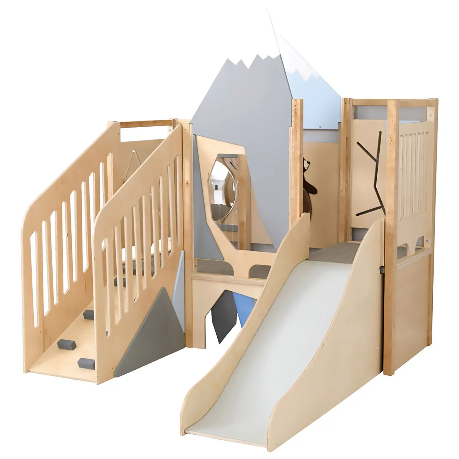 Il “Saliscendi Piccolo Alpinista” è un playground da interno che cattura l’essenza delle avventure montane, offrendo ai piccoli un’esperienza unica nel suo genere. Questo playground è il luogo ideale per i bambini curiosi e avventurosi che desiderano arrampicarsi e scivolare, stimolando la loro immaginazione e le loro capacità motorie.