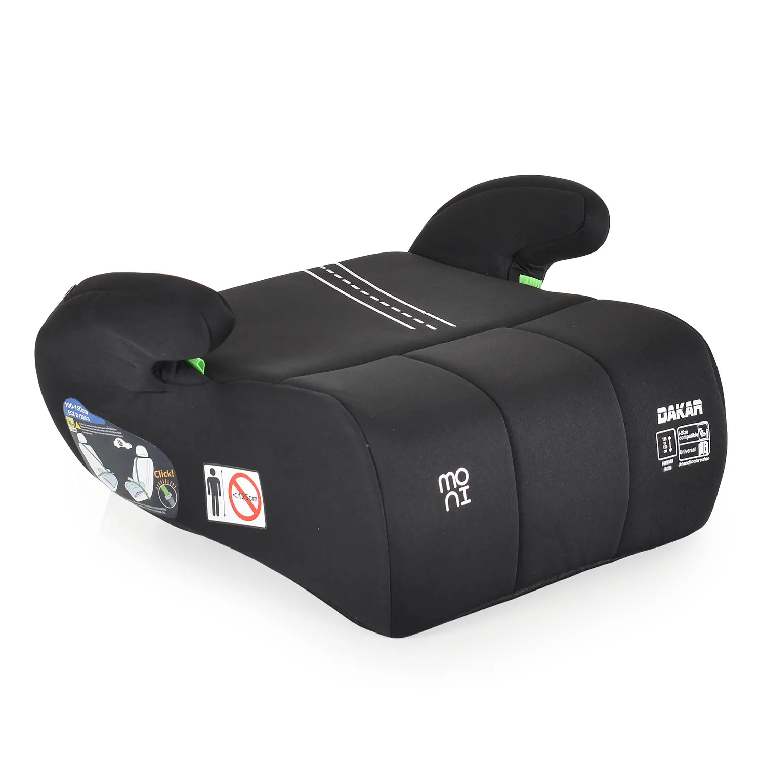 Seggiolino Auto Dakar Nero 100-150 cm - Sicurezza e Comfort a Bordo Il Seggiolino Auto Dakar Nero di Moni è progettato per garantire comfort e sicurezza ai bambini dai 4 ai 12 anni (22-36 kg). Si fissa facilmente con le cinture di sicurezza a 3 punti e include un morbido peluche per un viaggio piacevole.