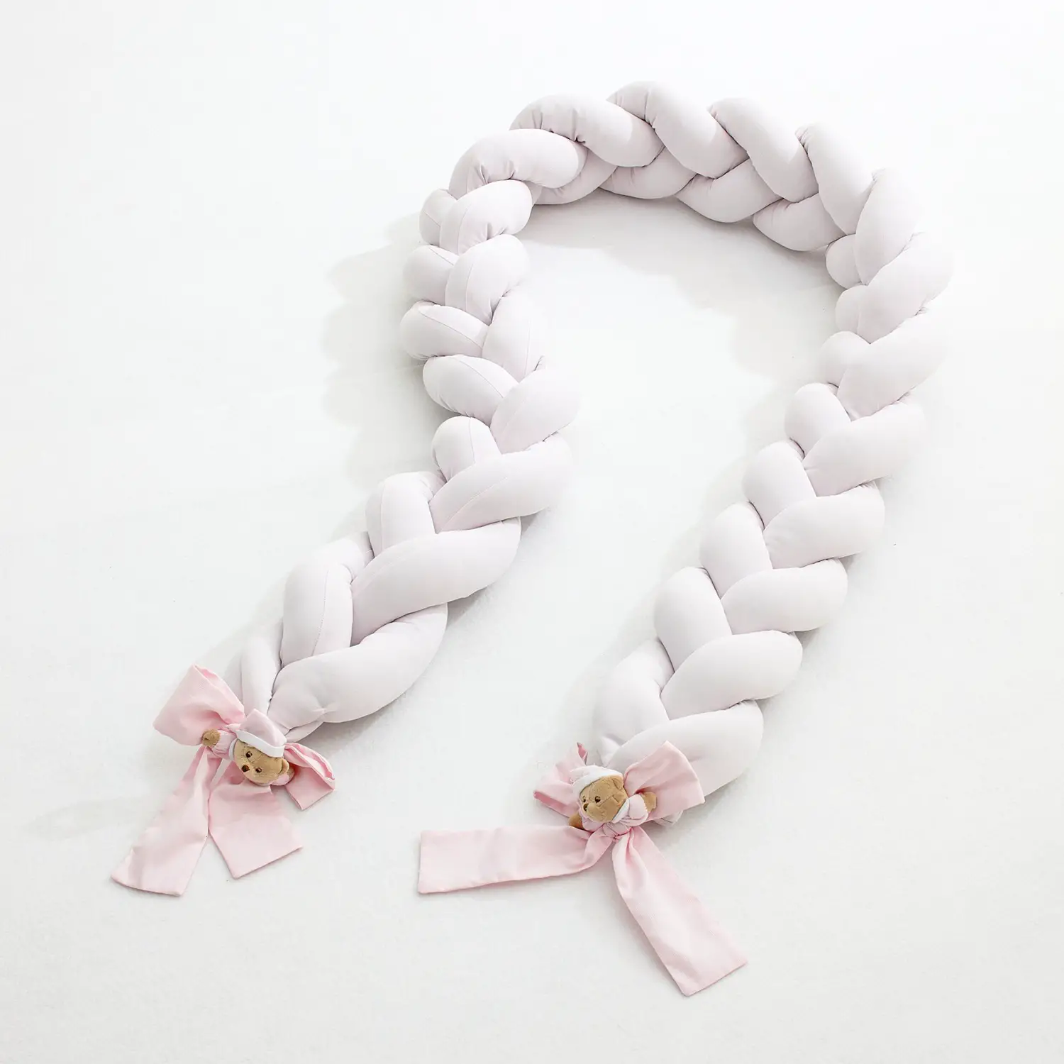 Il Riduttore intrecciato per lettino Nanàn è un accessorio delicato e funzionale, impreziosito dai romantici fiocchi e dal dolce peluche Puccio. Progettato con cura e attenzione per il benessere del tuo bambino, questo riduttore offre una protezione morbida e confortevole, circondando il tuo piccolo di dolcezza durante il sonno.