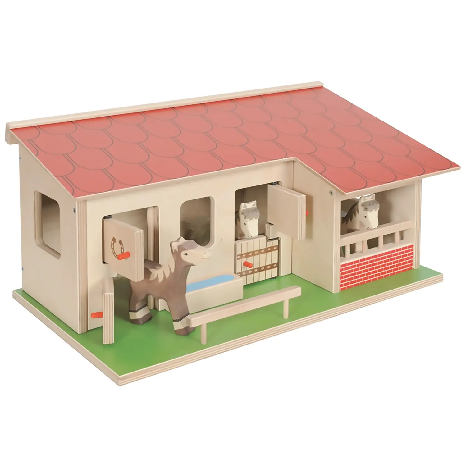 - Stimolazione Sensoriale: Grazie ai dettagli realistici e alla struttura tattile del legno, la scuderia stimola sia la vista che il tatto.