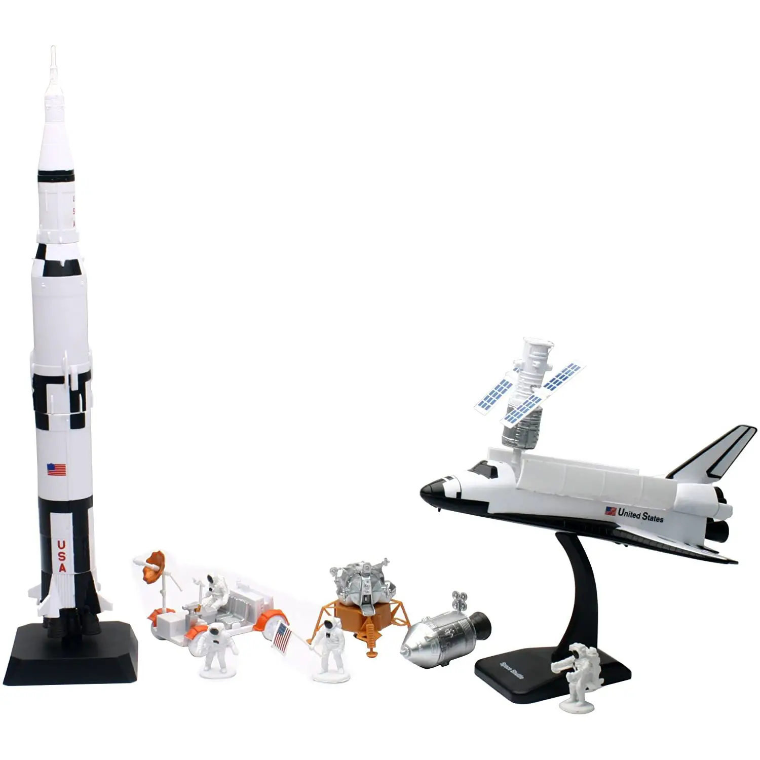 Set Giocattolo Completo: Include 14 pezzi, tra cui navetta spaziale, razzo, capsula, 4 astronauti, carrello di atterraggio e accessori spaziali realistici.