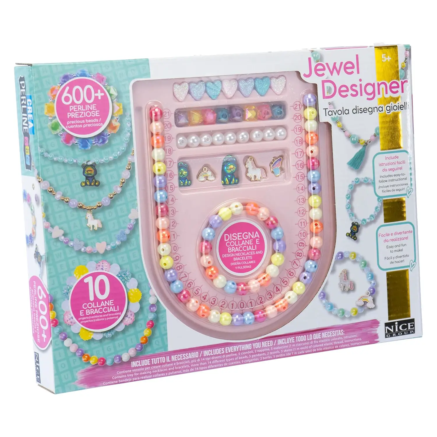 Bead Design Studio - Perline ABC Jewel Designer Un set creativo con oltre 600 perline colorate e di diverse forme per realizzare braccialetti e accessori unici. Ideale per i giovani designer!