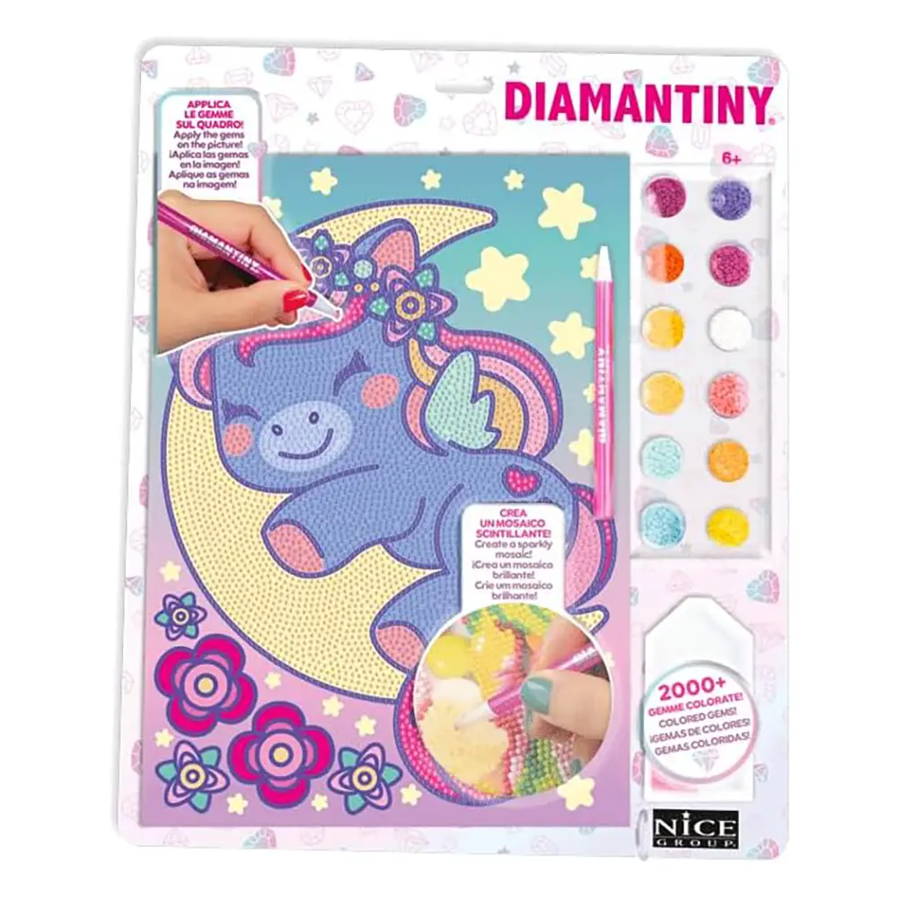 Crea un Magico Mosaico Unicorno Diamantiny Kawaii è un’attività di crystal art per realizzare un mosaico con gemme 3D. Segui la guida numerata e decora il dolcissimo Baby Unicorno con dettagli colorati e scintillanti!