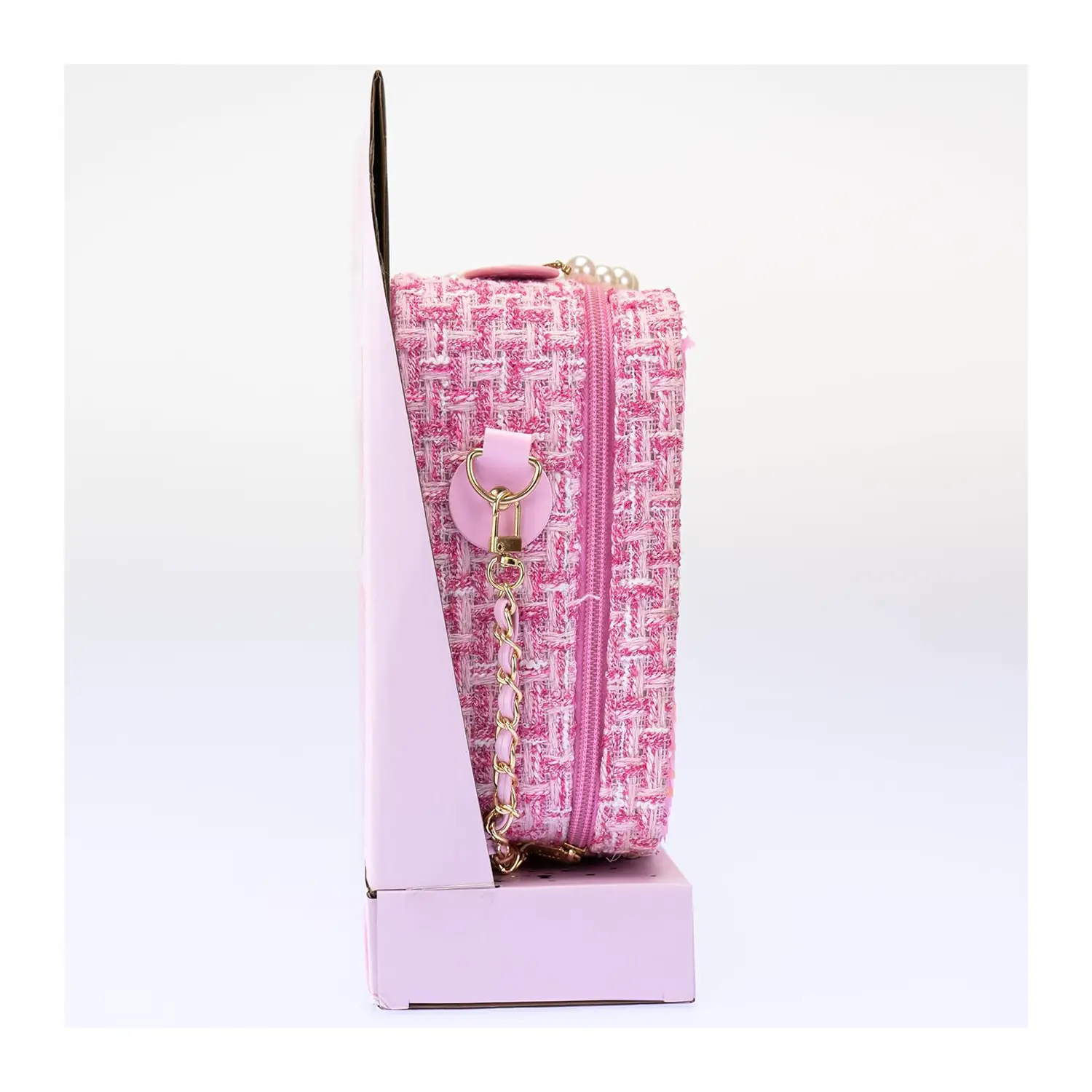 - ✅ Valigetta porta trucchi rosa con paillettes reversibili e tessuto tweed dal look glamour.