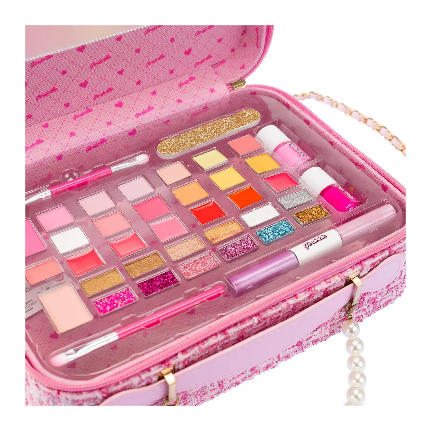 La Girabrilla Tweed Maxi Case è una valigetta porta trucchi di colore rosa, arricchita con paillettes reversibili e tessuto tweed per un tocco glamour. Pensata per bambine e bambini dai 5 anni in su, è ideale per dare spazio alla creatività e divertirsi in sicurezza.