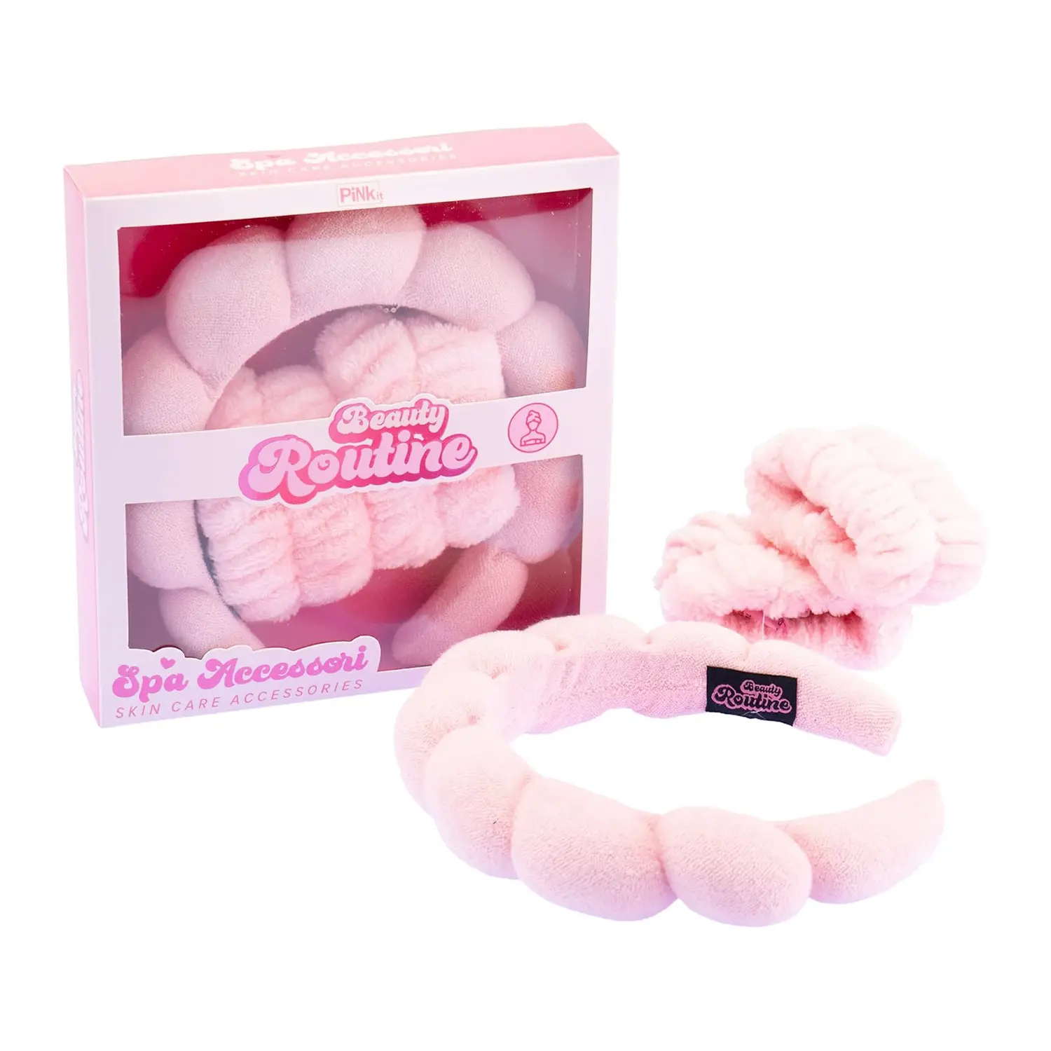 Il set di accessori per la skincare Beauty Routine è stato pensato per migliorare l’esperienza durante la tua detersione quotidiana e i trattamenti viso. Composto da una fascia per capelli e polsini morbidi, è l’alleato ideale per una skincare ordinata e senza disagi.