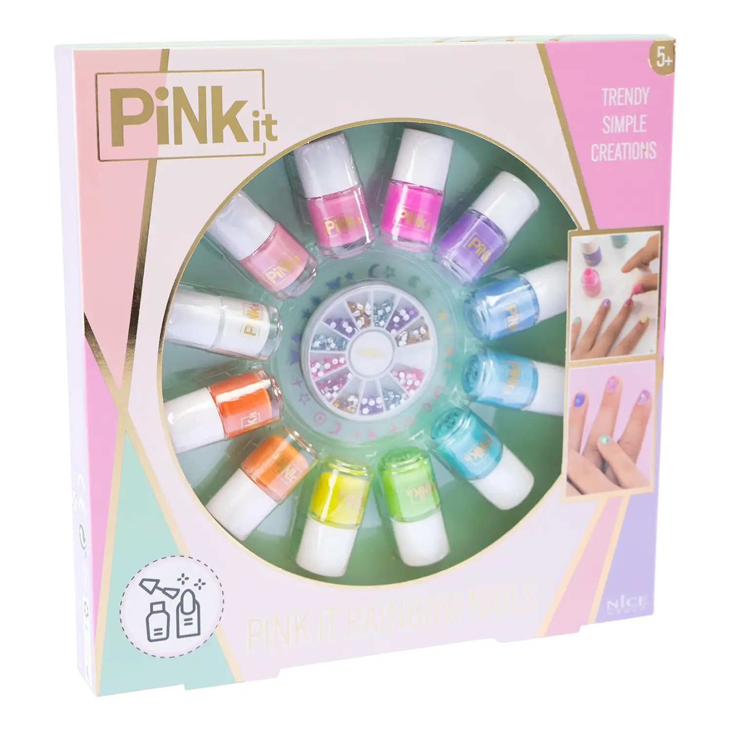 Pink It Rainbow Nails Crea look colorati e originali con il set Pink It Rainbow Nails. Questo kit completo ti permette di decorare le unghie con smalti dai colori vivaci e accessori divertenti.