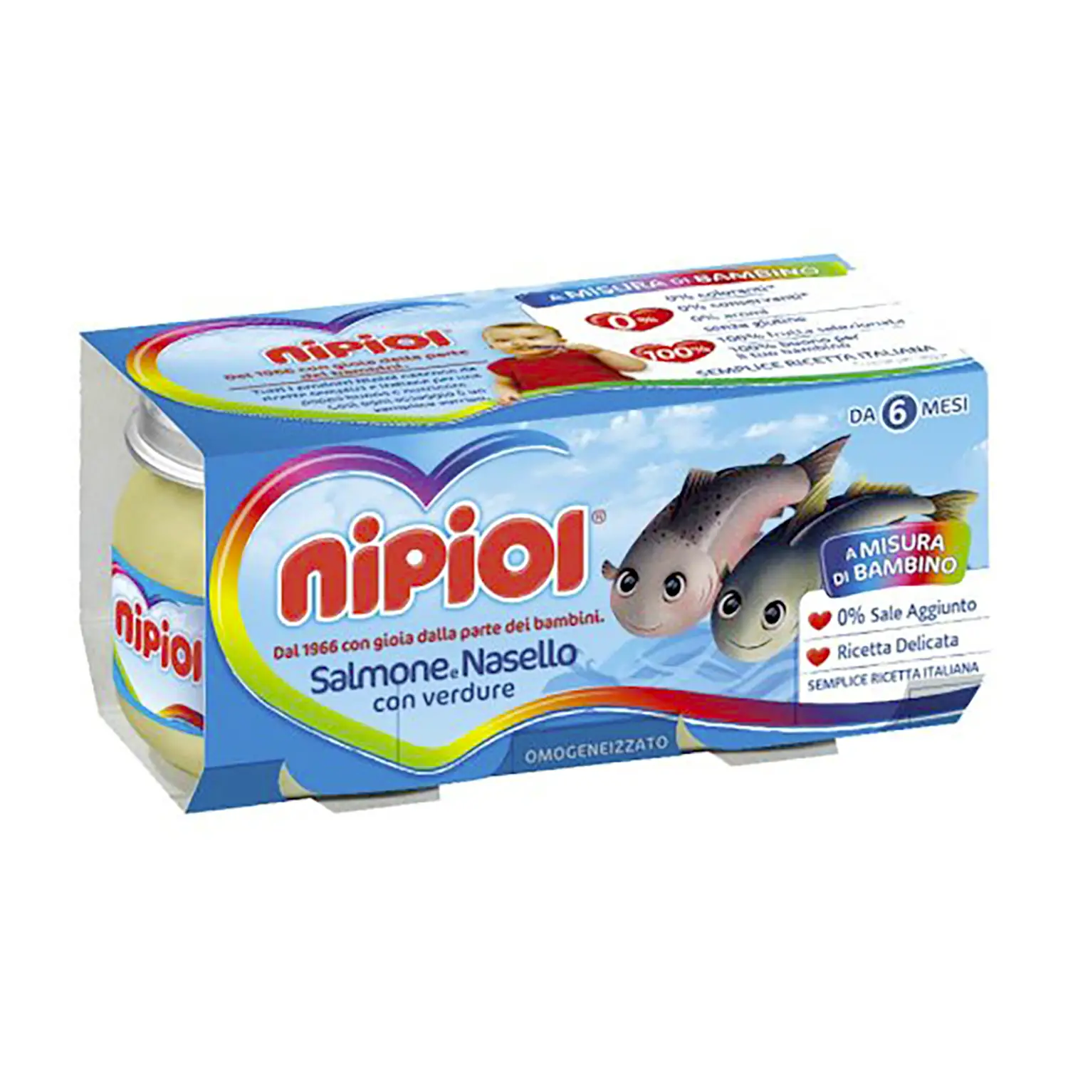 Omogenizzato Pesce Nipiol gr. 80x2 Filetti di Salmone e Nasello con Verdure - omogeneizzati