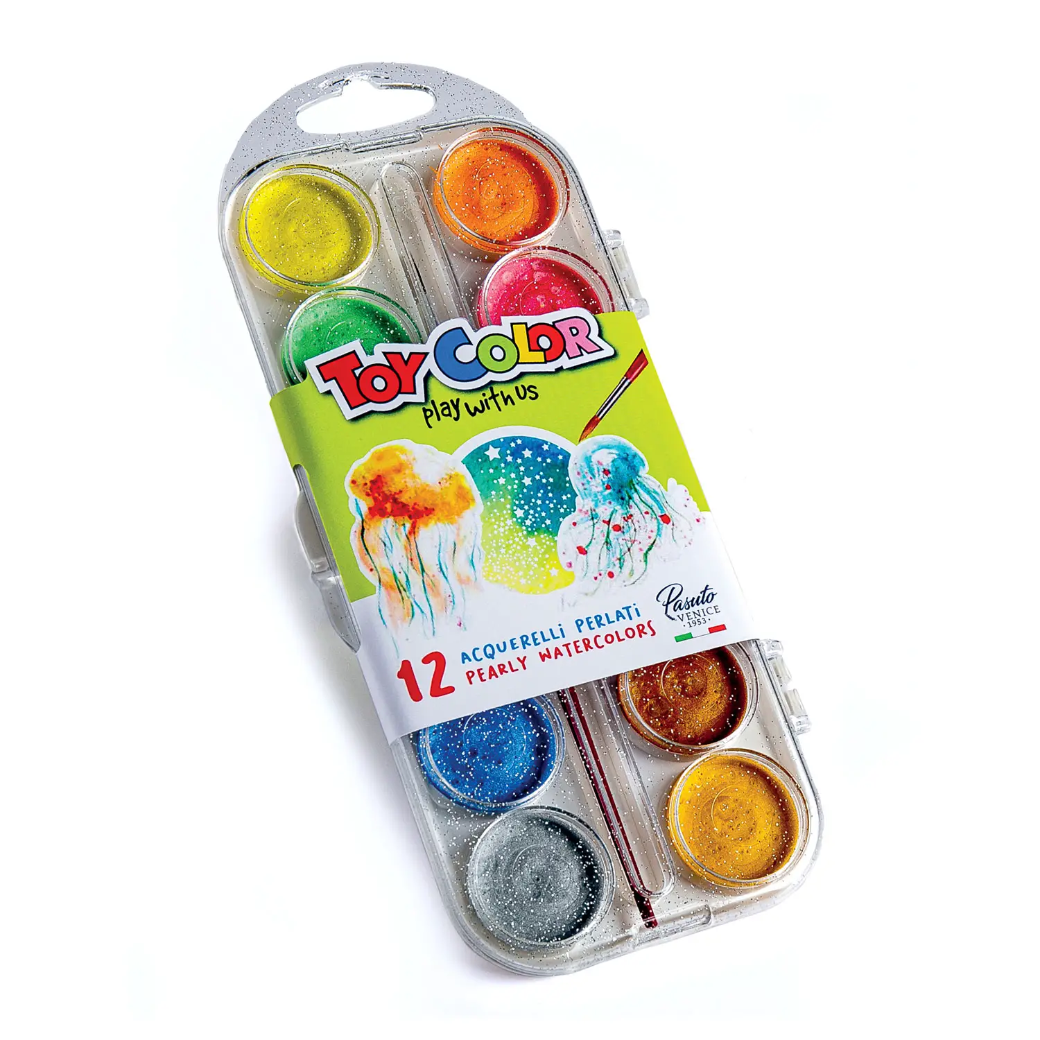 I Acquerelli Perlati 12 Colori offrono colori dai magici riflessi perlati, ideali per dipingere, creare e decorare con brillantezza. Grazie ai pigmenti lavabili, atossici e senza glutine, sono perfetti per bambini, principianti e artisti creativi, assicurando alta durata e facilità d’uso.