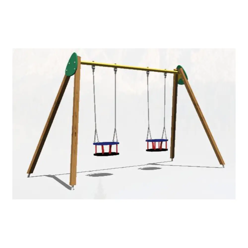 Altalena a due posti progettata per il divertimento dei più piccoli, dotata di due seggiolini a gabbia di sicurezza.