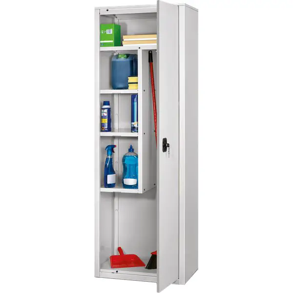 Scopri l’armadio multiuso porta scope, ideale per ufficio e ambienti vari. Robusta lamiera d’acciaio per una lunga durata.