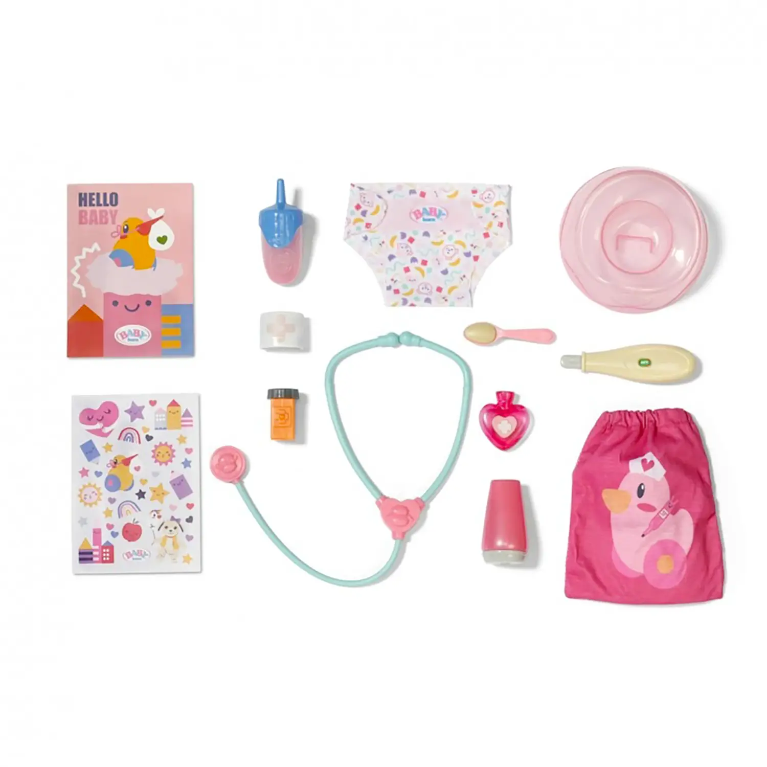 Accessori per la cura – Il set include 13 accessori tra cui biberon, pannolino, vasino, spazzola e altri oggetti indispensabili per prendersi cura della bambola come una vera mamma o un vero papà.