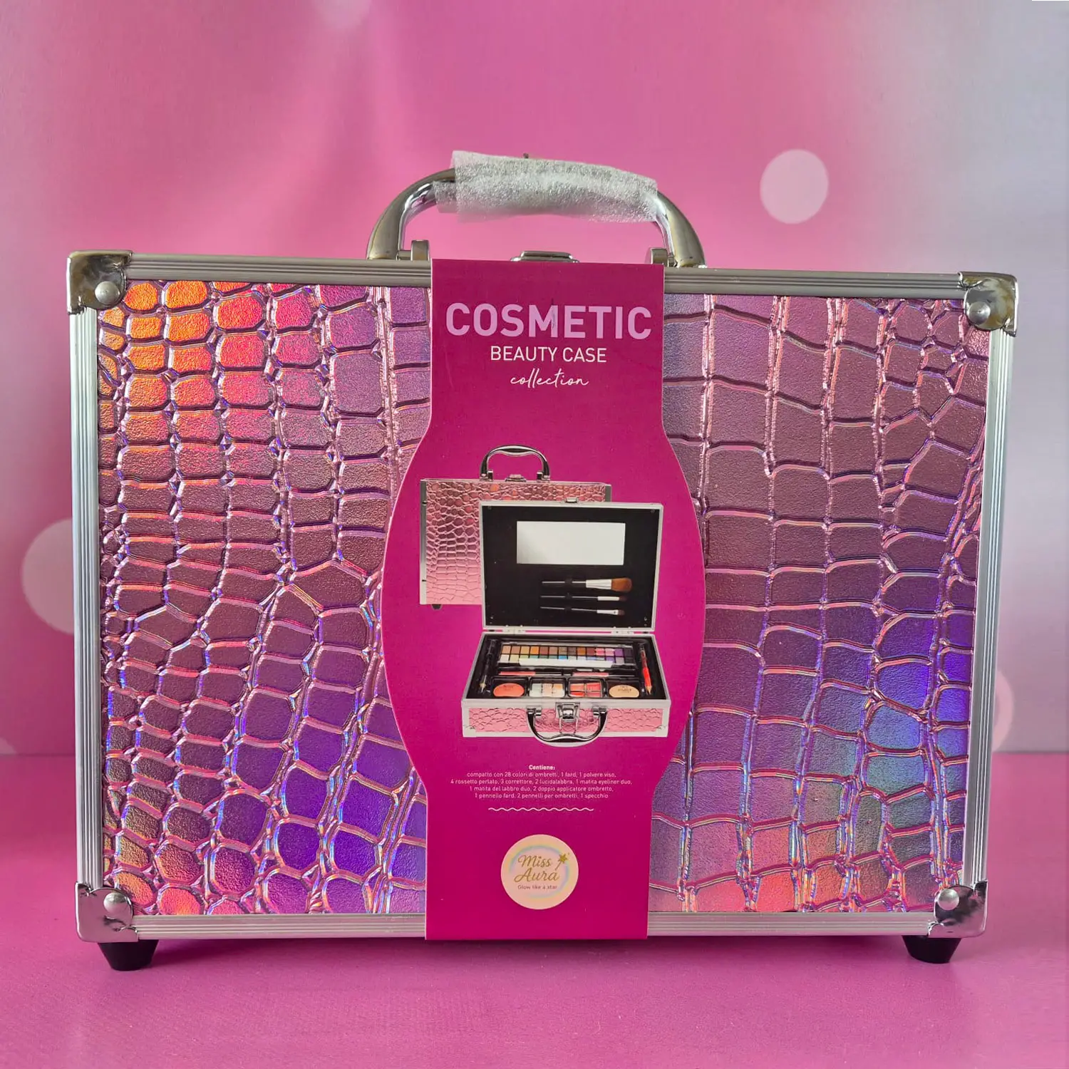 Beauty Case In Alluminio 46 Pezzi Finitura In Coccodrillo Rosa