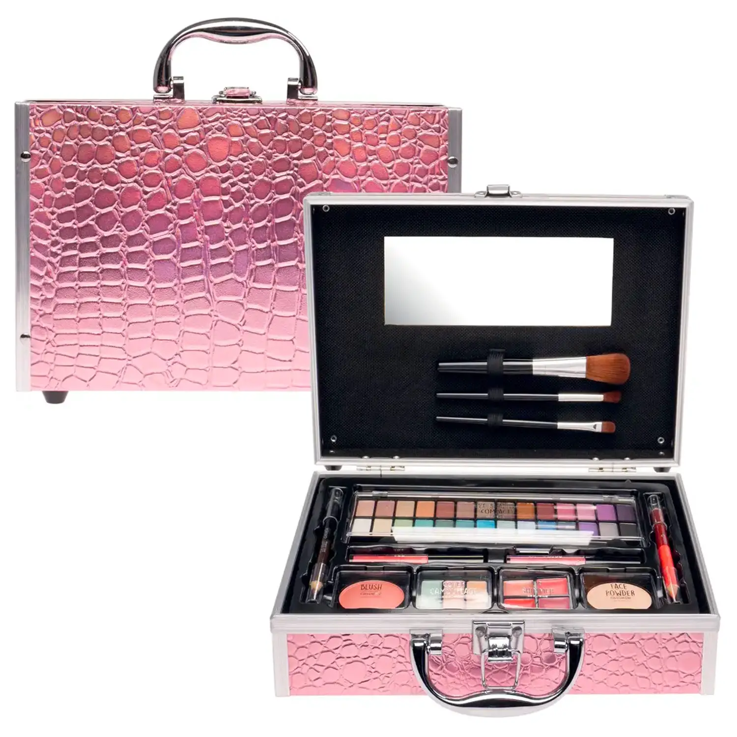 Eleganza e praticità in un’unica trousse: La Casuelle Trousse Make Up 46 Pezzi con finitura in alluminio effetto coccodrillo rosa è l’accessorio perfetto per chi ama il trucco e desidera avere tutto sempre in ordine e a portata di mano.