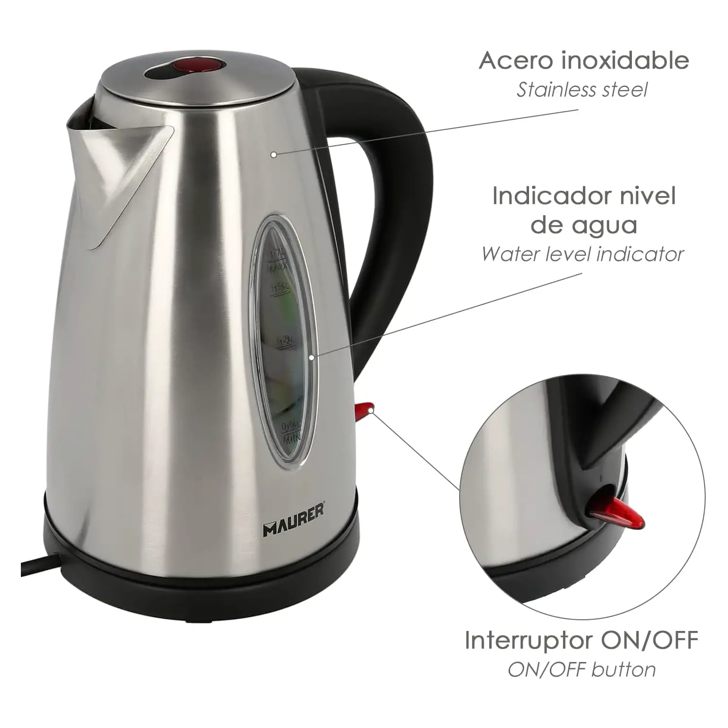 Bollitore elettrico potente e veloce Il bollitore Maurer da 2200W garantisce un’ebollizione rapida dell’acqua, ideale per preparare tè, tisane e bevande calde in pochi minuti.