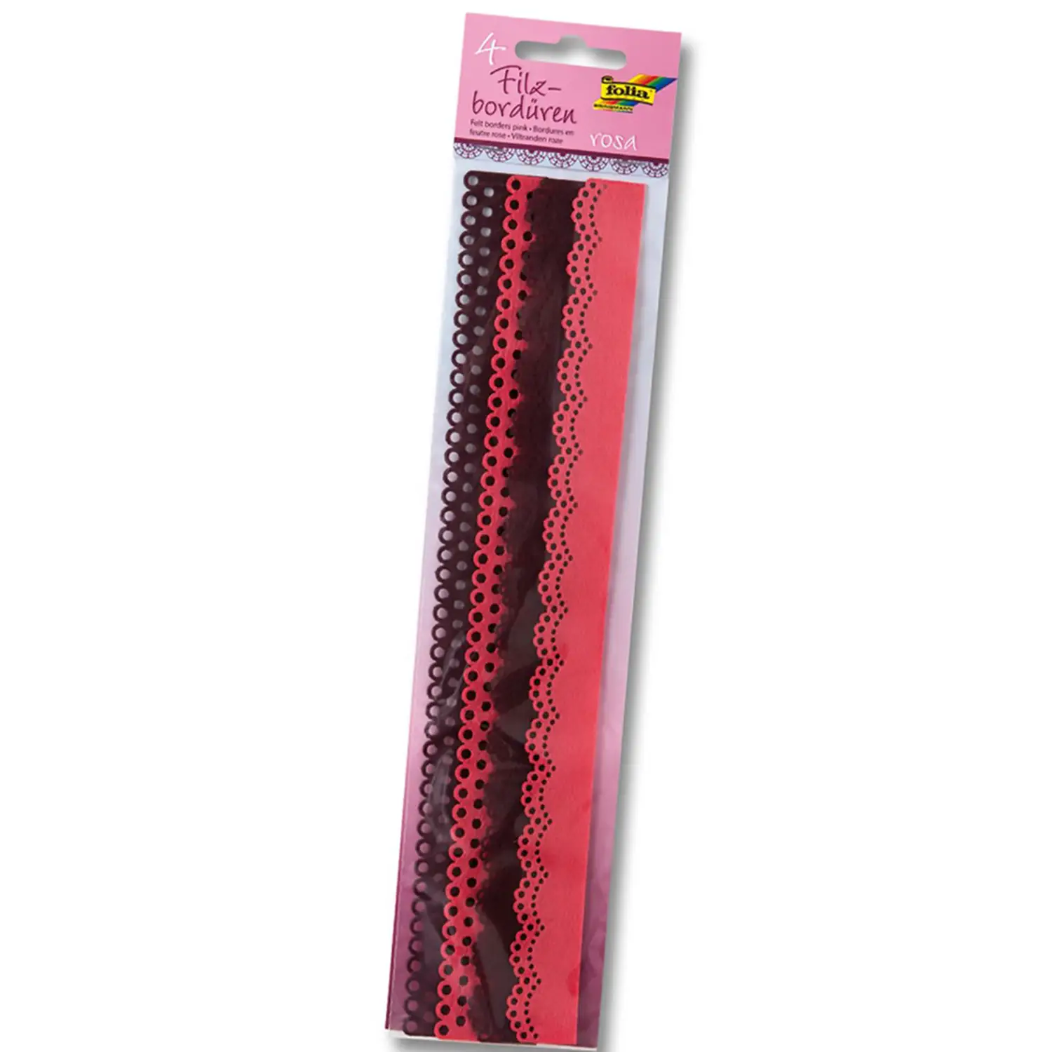 Bordi di Pizzo in Feltro Toni di Rosa 30cm 4 Pezzi. Queste deliziose bordure in morbido feltro con trama traforata tipo pizzo sono perfette per aggiungere un tocco di dolcezza e femminilità ai tuoi progetti artistici o artigianali.