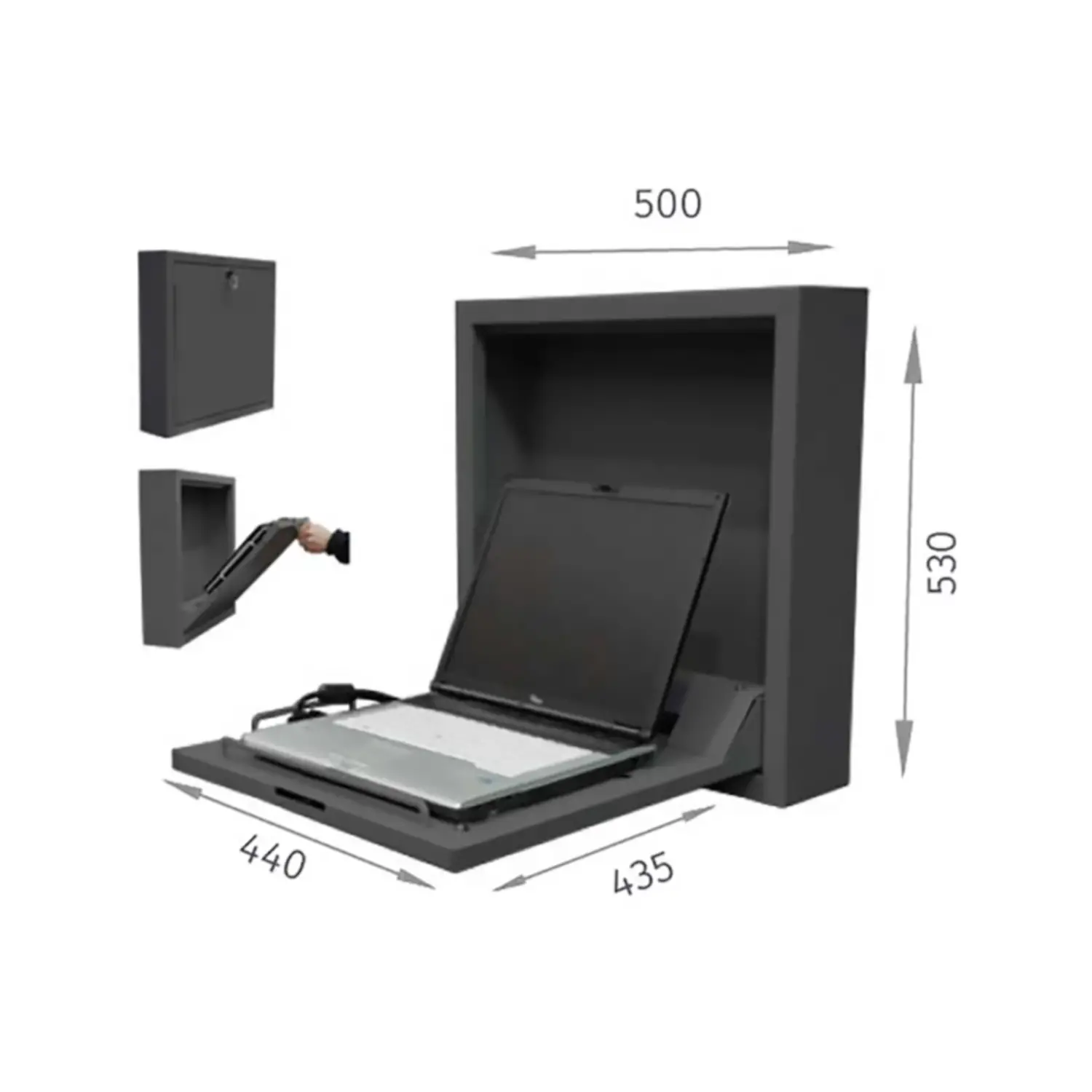 Box porta notebook fino a 17” specifico per 31037 e 31040 idoneo anche per mouse, tastiera e tablet. Possibilità di installazione a parete.