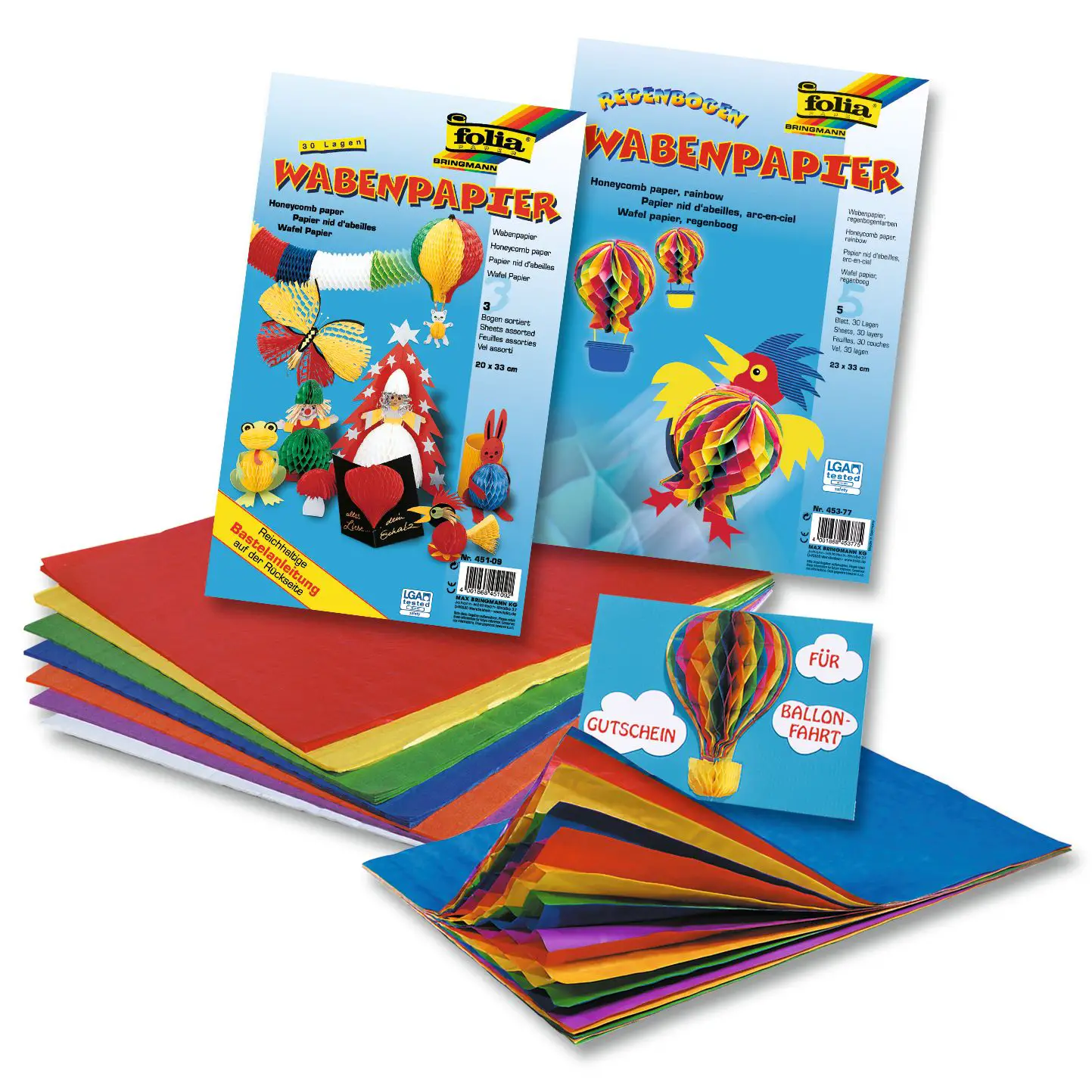 - ✅ Carta nido d'ape formato 33x40 cm, confezione da 8 fogli in colori assortiti.
