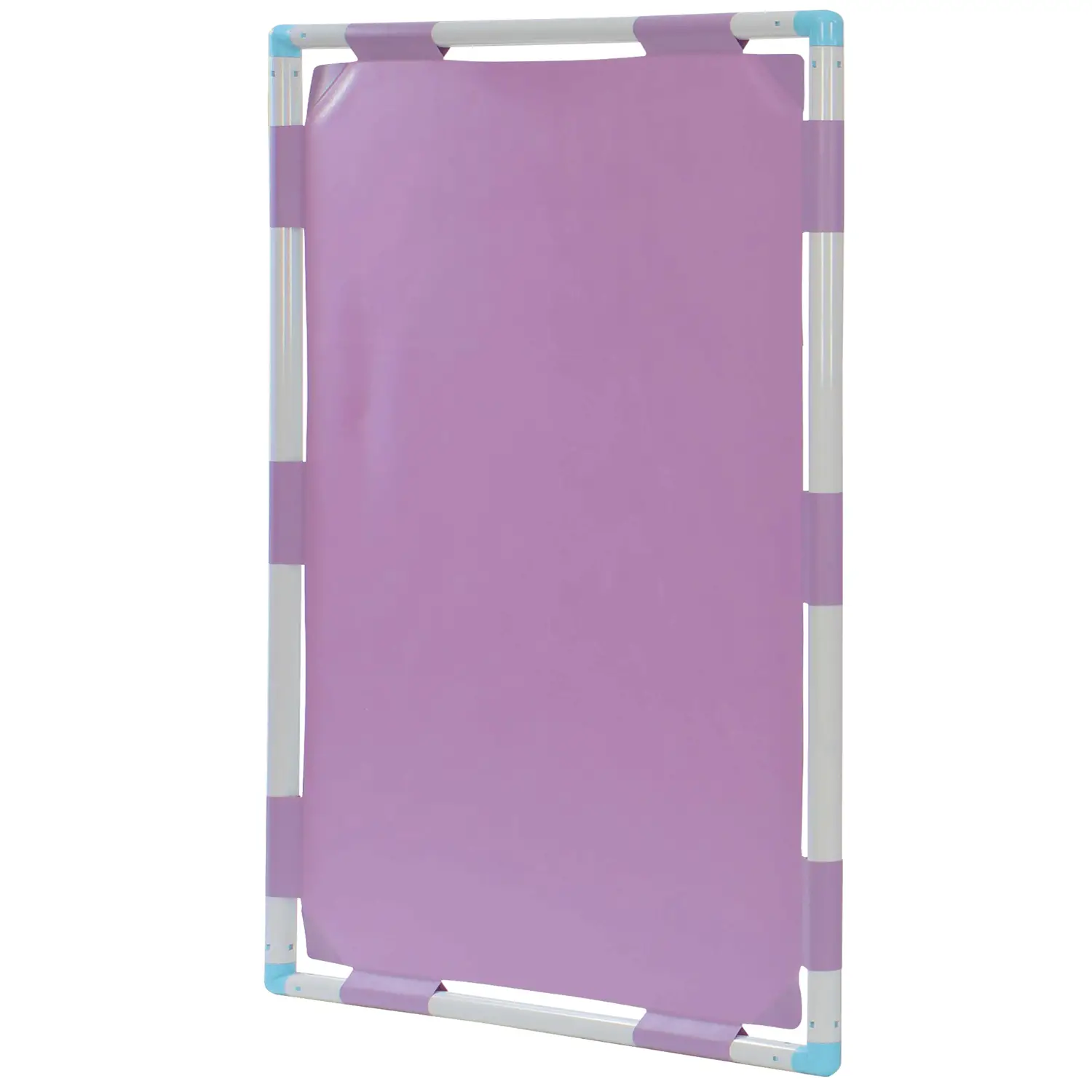 Il pannello centrale del divisorio è realizzato in robusta tela di materiale plastico colorato, che può essere facilmente lavato per mantenere la pulizia e l’igiene. La scelta del colore viola aggiunge un tocco di vivacità e stile all’ambiente.